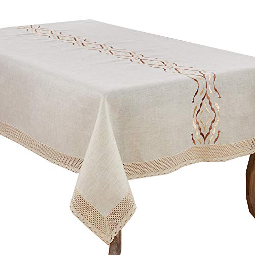 Fennco Styles Abstract Embroidery Lace Trim Table Linen Collection (72"X104" Rectangular)