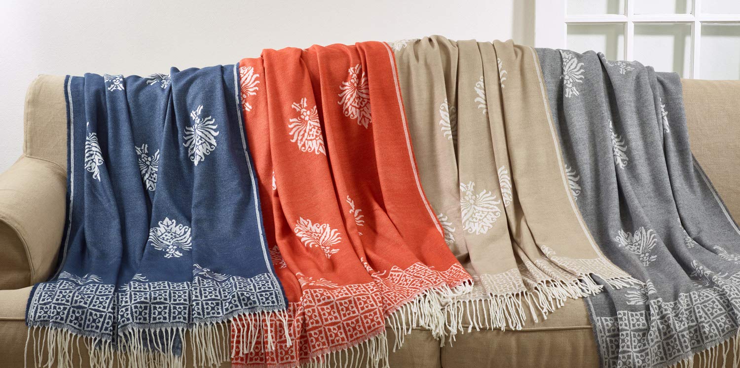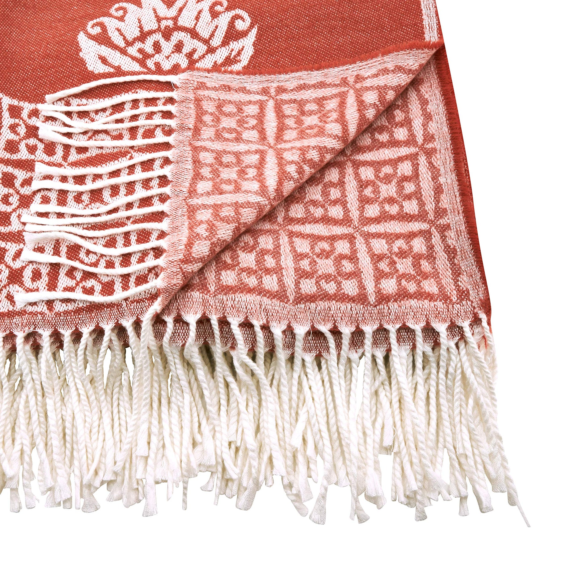 - MEDALLION THROW BLANKET – Featuring persimmon and ivory on viscose blend, this unique tasseled throw blanket the perfect choice for tasteful decoration of your living room or bedroom.
