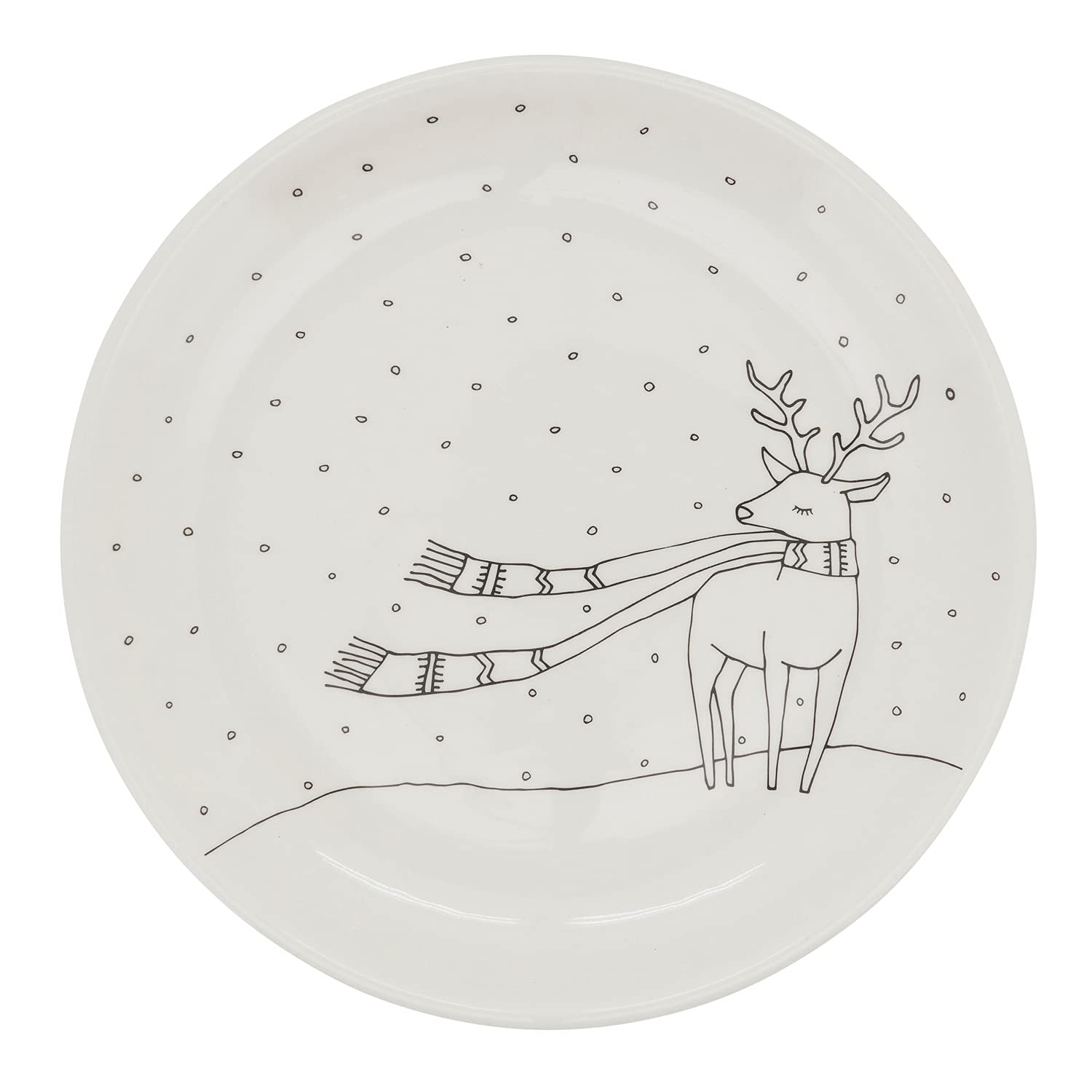 Details: Fennco Styles Cartoon Reindeer Dolomite Salad Plates, Set of 4 Add some fun to your holiday season with these cute Cartoon Christmas Tree Salad Plates. Features hand-drawing style reindeer wearing a scarf in black contrasting a white background for an eye-catching look. Use these charming salad plates for serving everyday meals, winter brunch, holiday entertaining, birthday party, and family gathering, or mix and match with other holiday colors and patterns to complete the seasonal tabletop décor. PRODUCT DETAILS : Dimensions: 8" diameter Material: dolomite Care Instructions: hand wash only Our Philosophy: At Fennco Styles you can shop a carefully selected range of home, lifestyle and gift products. We believe our homes should be reflections of the journeys we take. Our personal spaces deserve designs with a soul, a story, and a purpose. Our lifestyle brand offers inspired living through high-quality products, exclusive designs, and timeless style. We aim to source ethically, looking for products that are made from sustainable materials and designed to last and seeking out Makers that are conscious of their impact on the environment.
