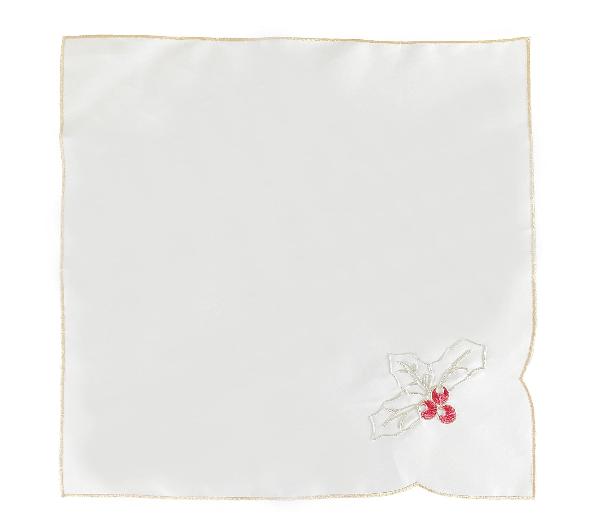 Fennco Styles Christmas Embroidered Holly Cloth Napkins 20" W x 20" L, Set of 4