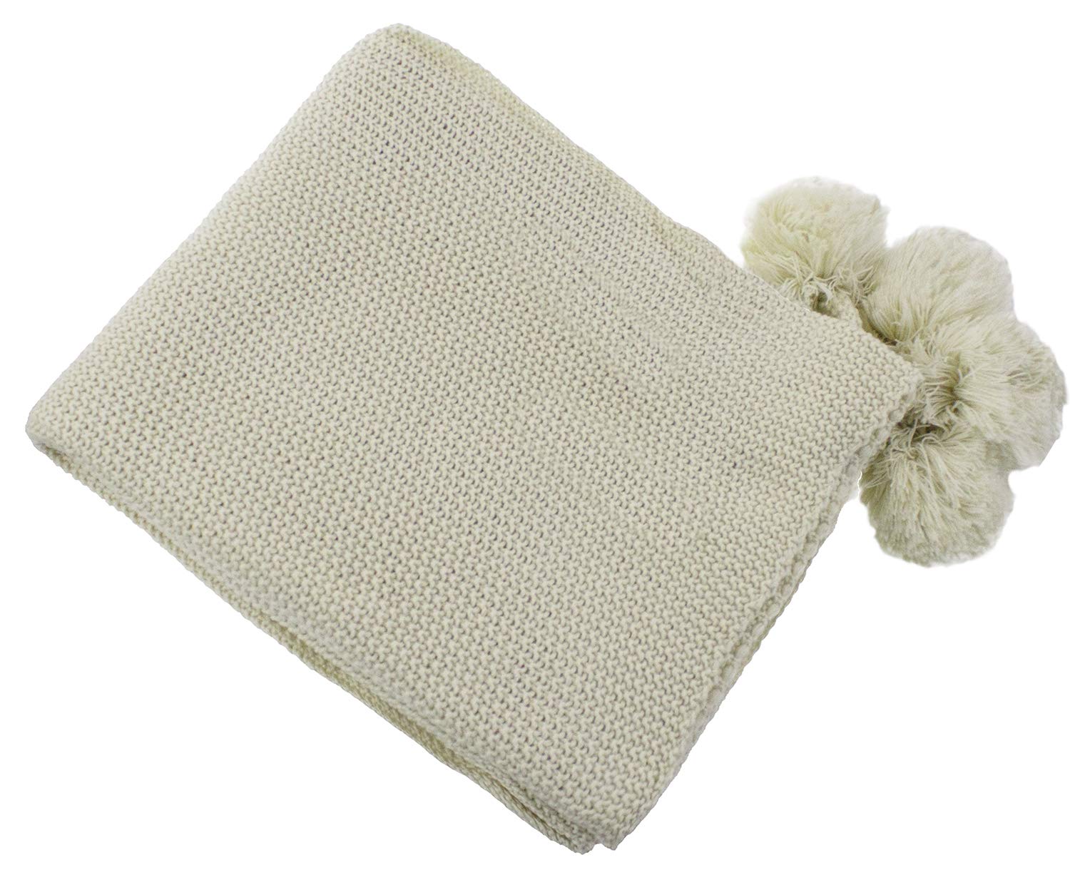 - This chunky knit throw features fun pom pom for a playful style. Pom pom details at each corner.