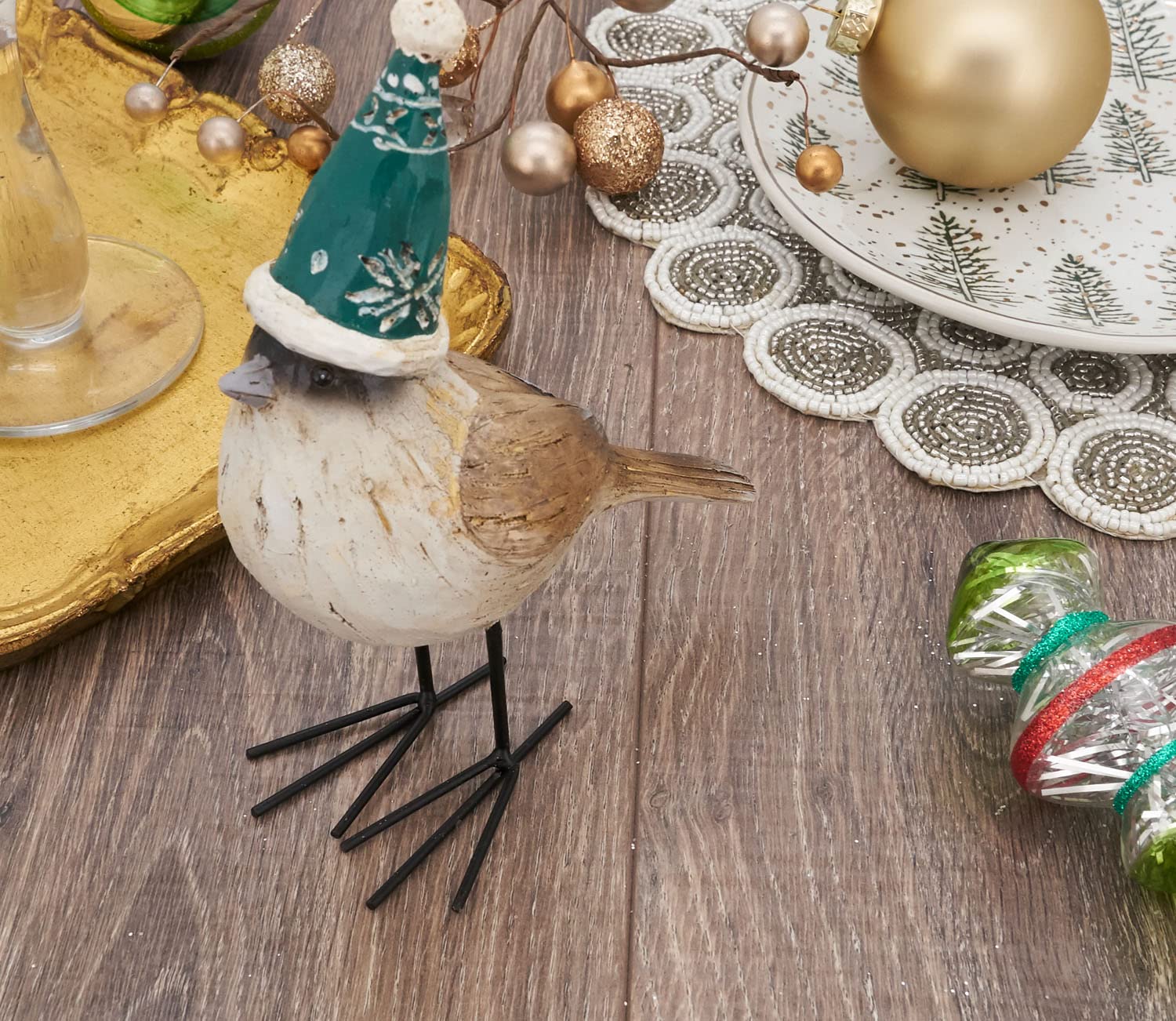 - DESIGN – Approx. 6.5" high. Perfect for wintertime, this adorable Standing Bird with Hat is a wonderful way to add to the festivities! Crafted realistic details, the carved visual texture brings some happiness to your Christmas season! Dressed in a warm green winter hat with snowflake design, this cute bird brings beautiful detail to any space. Display it on your mantel, side table, or console table with other outdoorsy winter decorations for a lovely, tiered focal piece in your room.