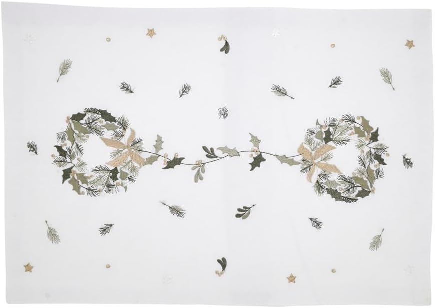 - Versatile Holiday Accent – Whether you're hosting a grand holiday feast or enjoying an intimate family dinner, this Embroidered Wreath Placemat Set is the perfect foundation for your table setting. It is more than just a decorative piece — it’s an invitation to celebrate the warmth and joy of the holidays with those you love. Pair with your favorite holiday décor to create an elegant, chic dining table.