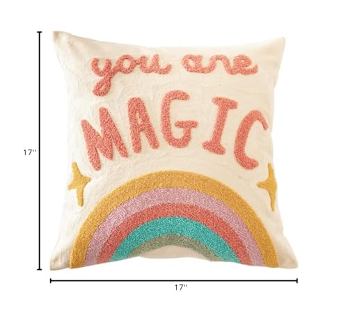 Details: Fennco Styles Embroidered Giraffe Decorative Cotton Throw Pillow Add a pop of color and whimsy to your kid's room décor with this Giraffe Tufted Throw Pillow. This square throw pillow features a relaxed giraffe chewing a bubble gum design crafted with embroidery bringing visual intrigue and playful vibes that'll spruce up the look of their space. The canvas backing provides soft comfort. Use this lovely throw pillow along with their window or bed with other decorative pillows and plush toys to create a beautiful setting in any room. Design is not reversible. PRODUCT DETAILS : Dimensions: 17"W X 17"L Material: cotton (pillow cover); polyester (pillow insert) Care; cool machine wash, do not bleach, hang dry, do not iron Our Philosophy: At Fennco Styles you can shop a carefully selected range of home, lifestyle and gift products. We believe our homes should be reflections of the journeys we take. Our personal spaces deserve designs with a soul, a story, and a purpose. Our lifestyle brand offers inspired living through high-quality products, exclusive designs, and timeless style. We aim to source ethically, looking for products that are made from sustainable materials and designed to last and seeking out Makers that are conscious of their impact on the environment.