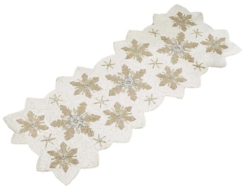 - HAND-BEADED HOLIDAY TABLE RUNNER - This beaded snowflake table runner is a wonderful choice for your Christmas table, or throughout the holiday season. Featuring hand-beaded glass beads add a sparkly note to the tabletop. It brings elegance to your tabletop, without overwhelming.