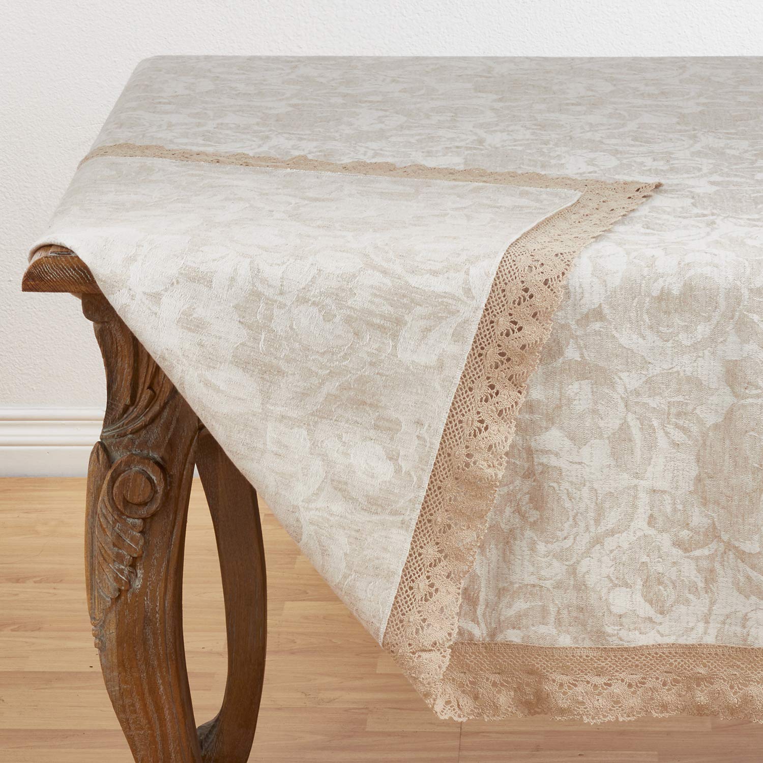 Fennco Styles Feronia Collection Country Jacquard Lace Trim Cotton Blend Table Linen – Natural Table Runner for Banquet, Family Gathering, Special Events and Home Décor