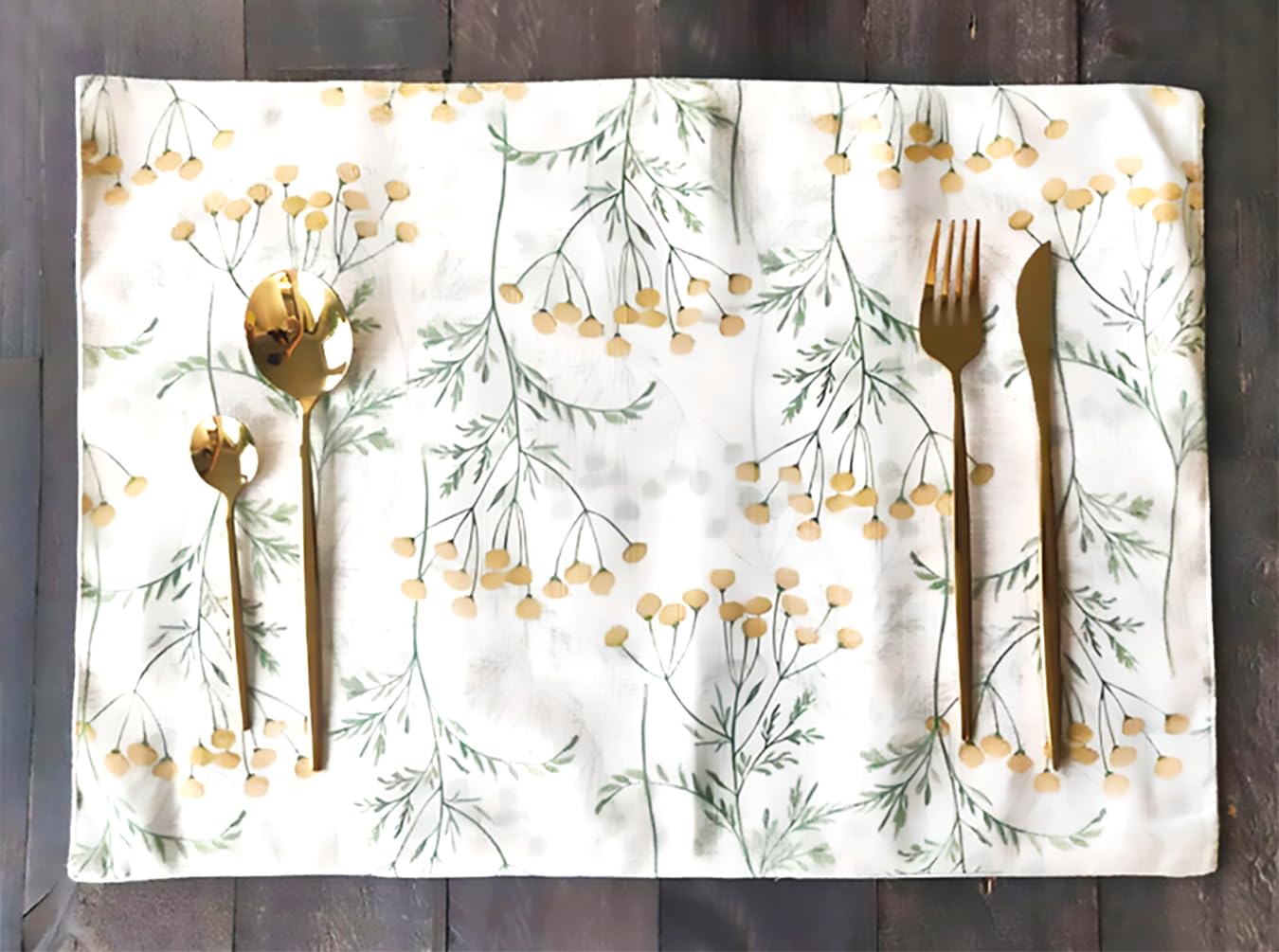 - PREMIUM QUALITY – We craft our table linen from superior quality with 100% polyester construction, soft, breathable fabric for lasting use, and easy to clean, it can easily stand up to the demands of mealtime. This floral design placemat sets a beautiful provide a subtle and sophisticated impact on your dining display while protecting the table against scratches and spills. Ideal for summer gatherings and special occasions. Care: Cool machine wash, do not bleach, medium iron.