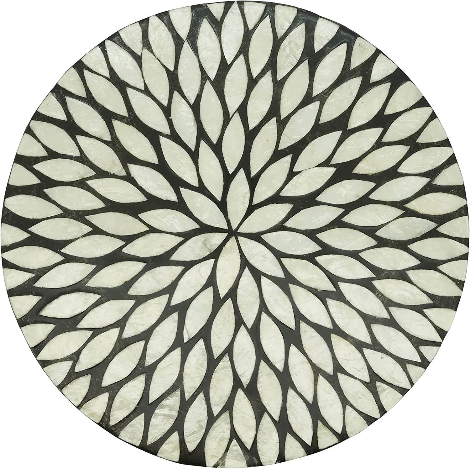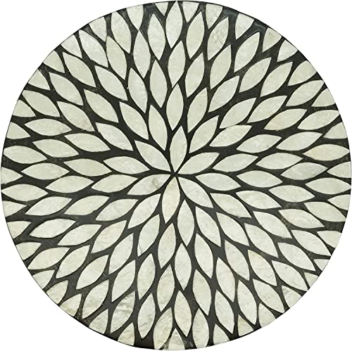 Fennco Styles Geometric Capiz Design Placemat 15" Round, 1-Piece – Black & White Elegant Table Mat for Home, Dining Room Décor, Banquets, Indoor & Outdoor and Special Events
