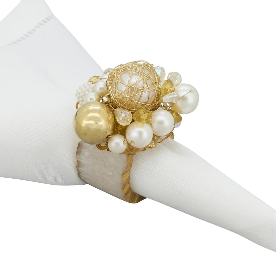- 4PK GLITZY BEADED NAPKIN RINGS – Enhance your table's style with these charming Glitzy Beaded Napkin Rings. The intricate beaded design features clusters of gold-tone balls that add a touch of sophistication and luxury to your table décor, while the beautiful combination of acrylic and glass beads catches and reflects light for a glittering effect. Whether it's a fancy dinner or any special gathering, these napkin rings are sure to amaze your guests and elevate your table's elegance.
