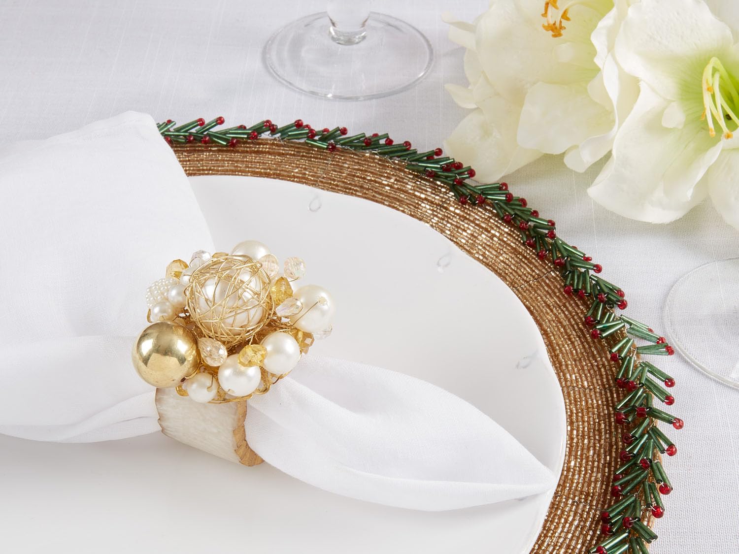 - PERFECT NAPKIN RINGS DÉCOR – Approx. 2.5" D X 2.5" W X 2" H, these delicate napkin rings add a layer of holiday spirit and style to your dining setting. Best suited for any holiday celebrations, the beaded designs and colors bring delightful cheer to any space, these gold-tone napkin rings are a nice way to add texture and sparkle to the dining table, they will stunning at a special event, family gathering, or holiday party.