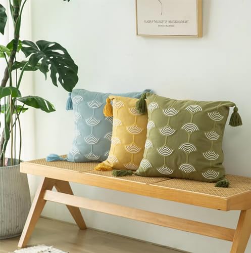 - PERFECT COUCH PILLOW DECOR – At 18 inches in both width and length, this unique accent pillow is perfect for layering on your bed or sofa. The captivating colors and ginkgo leaf embroidery embody a springtime theme, making it ideal for adding a seasonal touch to any space and an easy way to change the look of a couch, chair, or furniture piece in the home or office. Toss it onto any seat of your choice or set it against a bank of pillows on the couch for an instant upgrade, perfect for the couch, loveseat, and any well-dressed chair. The design is intended for the top side only.