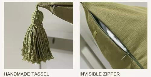 Fennco Styles Hand Beaded Embroidery Ginkgo Leaf Throw Pillow with Tassel 18" W x 18" L - Green Leaves Cotton Cushion for Home, Couch, Living Room, Bedroom and Office Décor