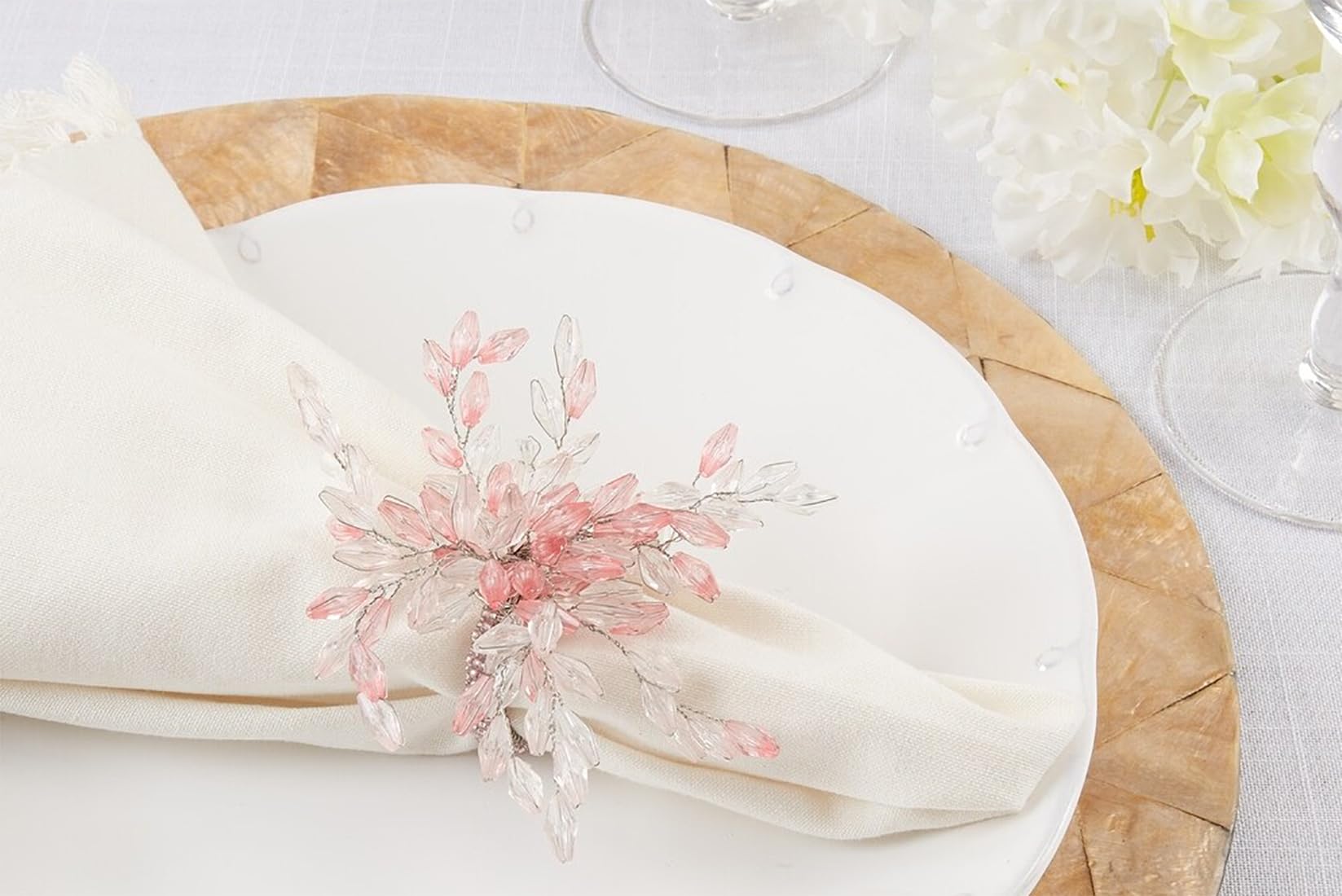 - MULTI-PURPOSE UTILIZATION – The Beaded Flower Napkin Rings give the finishing touches to any dining décor, it can be used all year round. Use it to decorate indoor and outdoor events, seasonal parties, banquets, or use inside when hosting holiday meals for friends and family gatherings, casual dinner, and more. Mix and match with different napkins to add personality or blend with your favorite décor to create a holiday chic dining table décor.