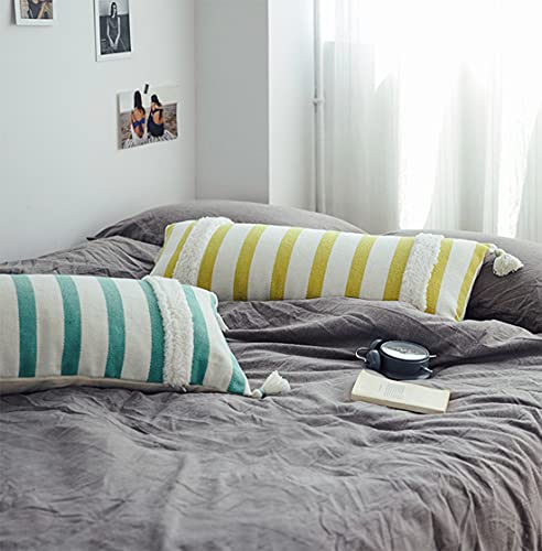 Fennco Styles Handcrafted Tufted Striped Tassel Decorative Lumbar Throw Pillow Cover 14" W x 32" L - Cushion Case for Home, Couch, Living Room, Bedroom, Office Décor