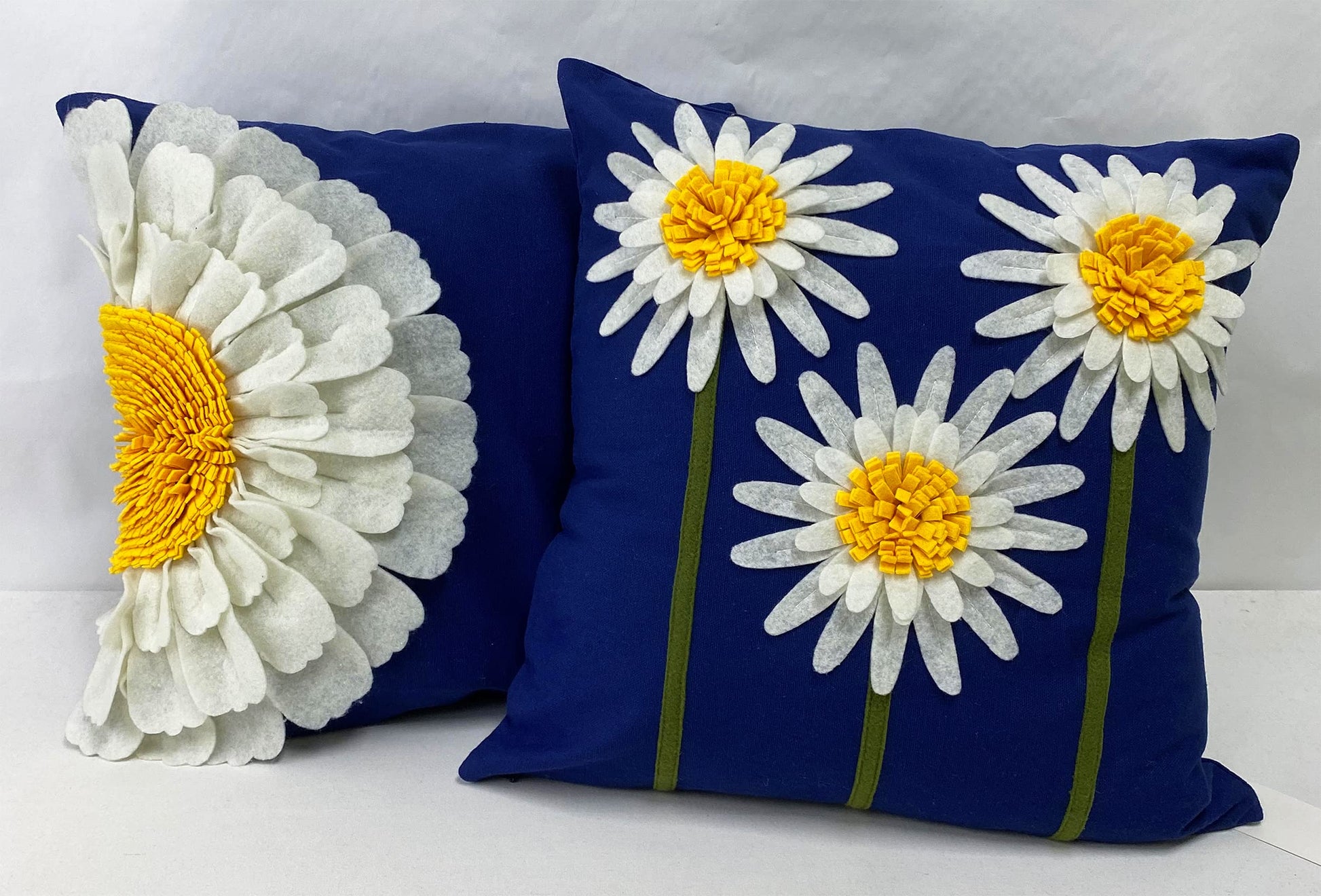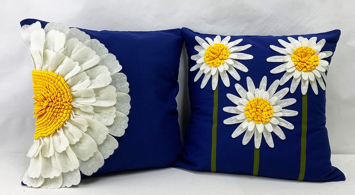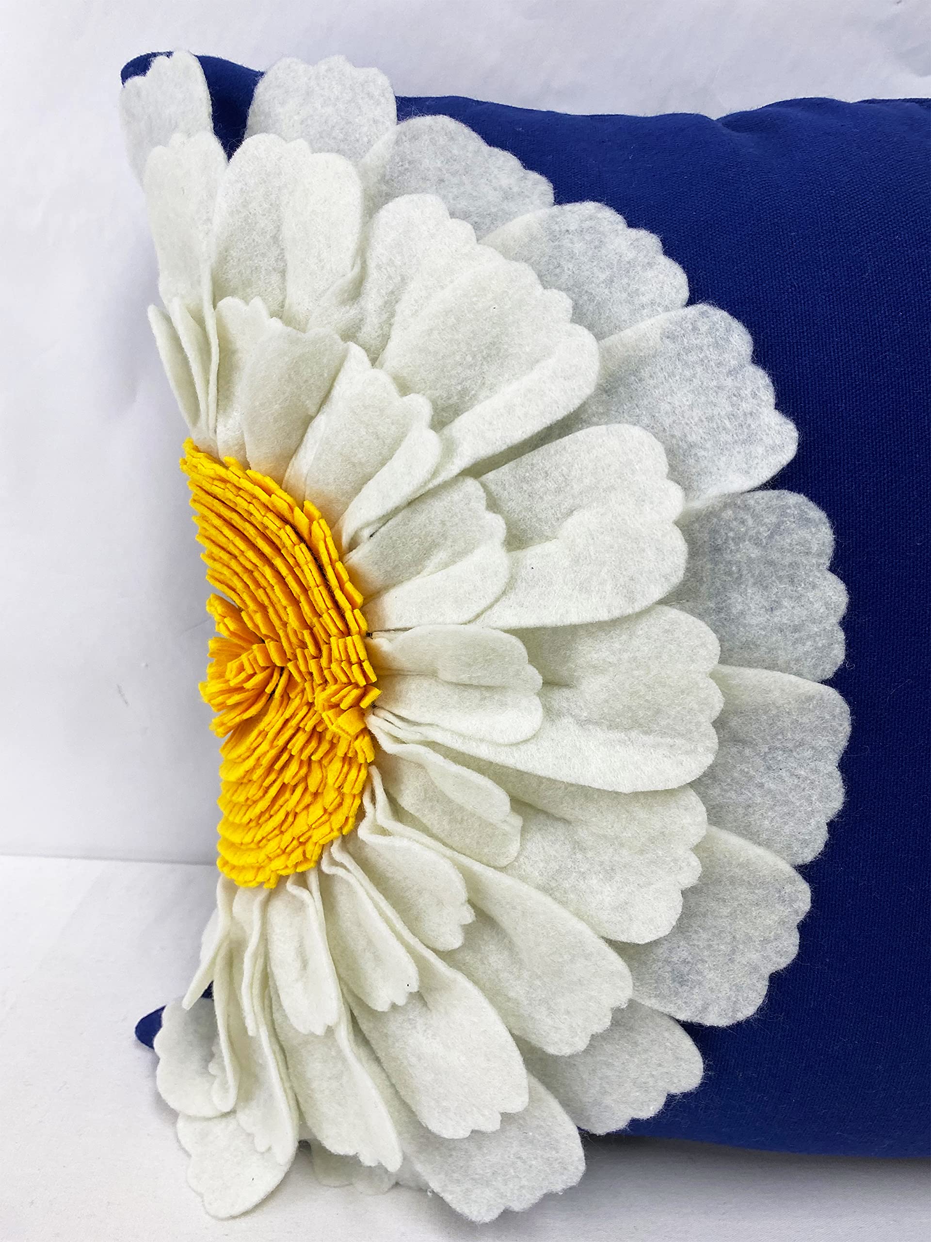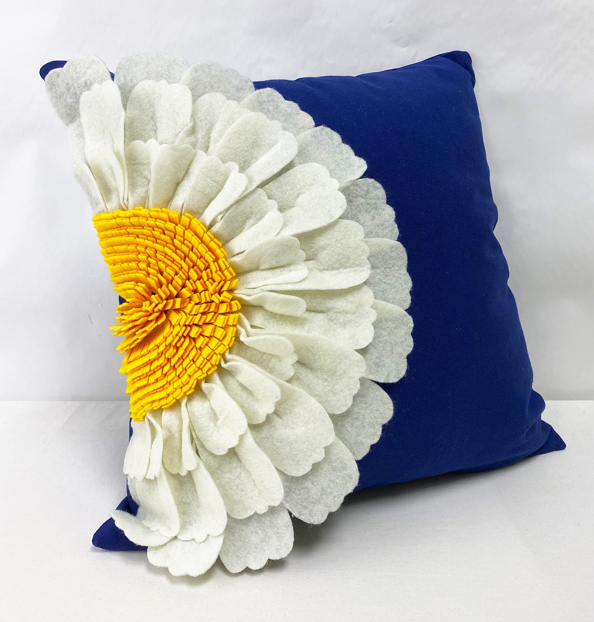 - 3D SUNFLOWERS THROW PILLOW – Brighten up your space with this Sunflowers Throw Pillow from Fennco Styles. Featuring the handmade 3D felt sunflowers on a navy blue pillow that creating a unique texture and visual interest to your seating area. This Sunflower design is giving a joyful update with seasonal cheer touch, use this lovely throw pillow along with the window or bed with other decorative pillows to create a delightful setting in any room. Design is not reversible.