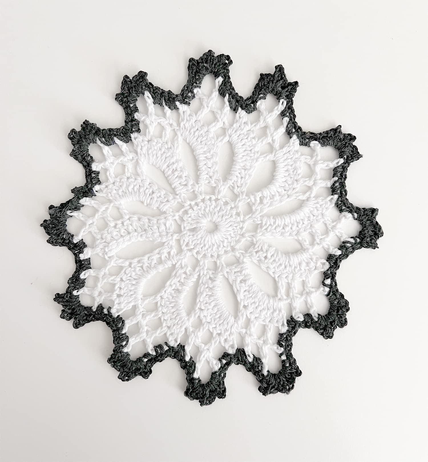 Fennco Styles Handmade Crochet Cotton Whirlwind Two-Tone Doily 6-Inch Round, 2-Piece - Drink Coaster for Everyday Use, Holiday, Farmhouse Décor, Cocktail, Tea Party, Special Occasion
