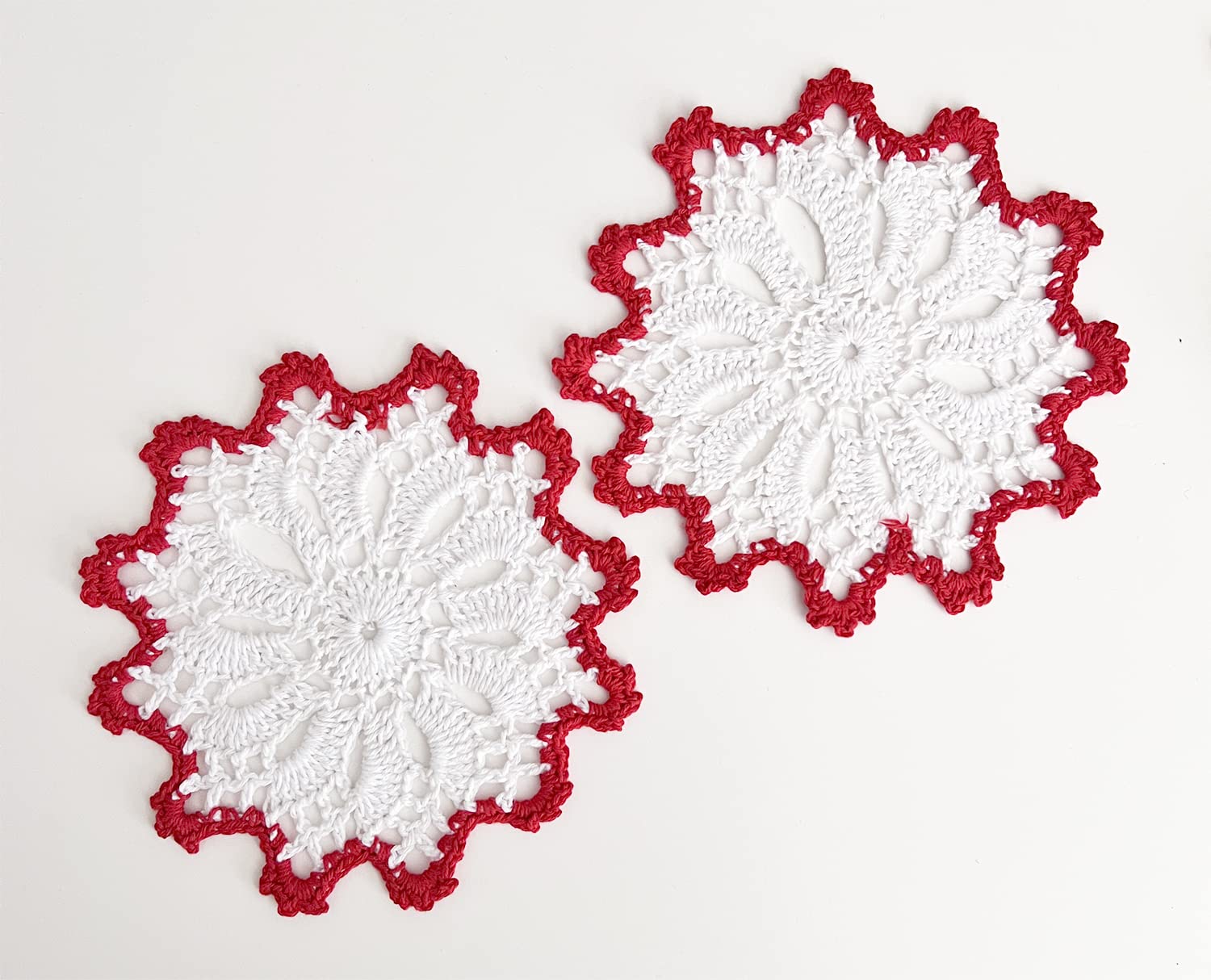 - PERFECT DRINK COASTERS – At 6 inches in diameter, these round-shaped cloth coasters are perfectly sized for layering on your dining table. The delicate crochet design brings a touch of rustic-chic appearance, and also offers a stylish background for your tableware and centerpieces. They protect your tabletop from condensation marks and drink stains. Great for everyday use, and casual entertaining during the holiday season.