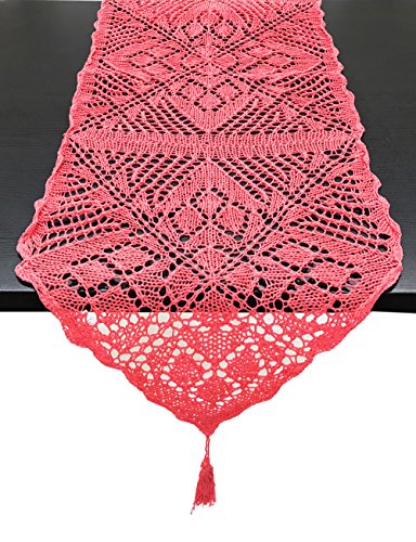Fennco Styles Handmade Crochet Lace Design Cotton Table Runner with Tassels
