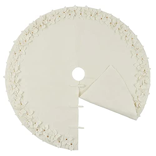- HANDMADE FLET FLOWER TREE SKIRT – Wrap your Christmas tree up in a nice festive design with the Felt Flower Tree Skirt. This woven fabric Christmas tree skirt comes in a cream tone helps make the area underneath the tree look neat and elegant, while the handmade felt flower trim puts a girly and festive finish touch. Charming and functional, this tree skirt it's a great way to protect your floors, but also to cover any aesthetically unpleasing tree stand.