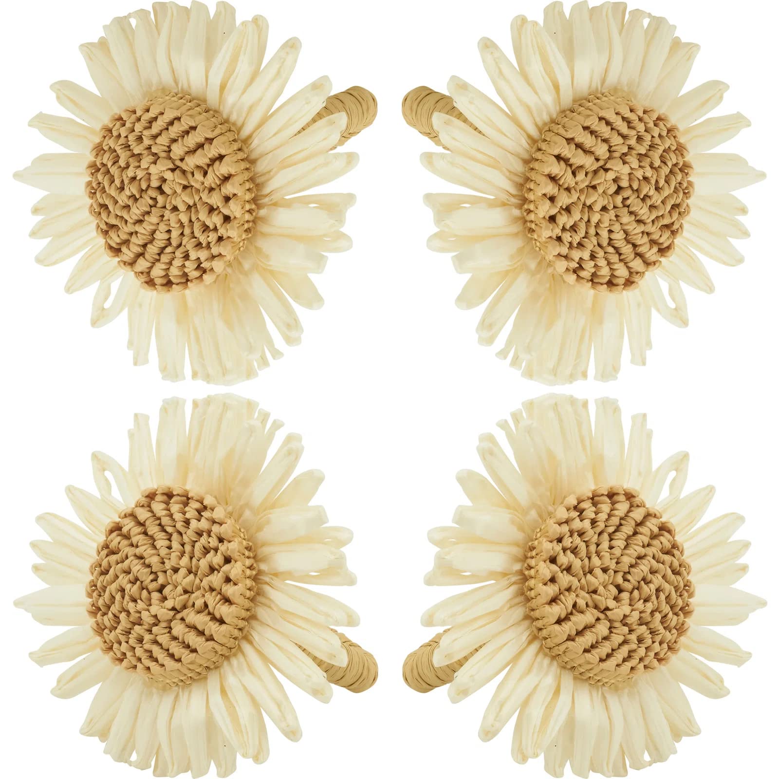 - 4PK HANDMADE FLOWER NAPKIN RINGS – Add a blossoming charm to your napkins with these cute Flower Design Napkin Rings. Handcrafted and bright in color, these floral napkin rings feature white flowers that are easy to pair. The woven-like centers bring beautiful texture to each and every place setting. This gorgeous floral napkin ring adds a delicate touch to any table decoration, ideal for dining room décor, outdoor dining, garden brunch, casual entertaining, and any other special event!