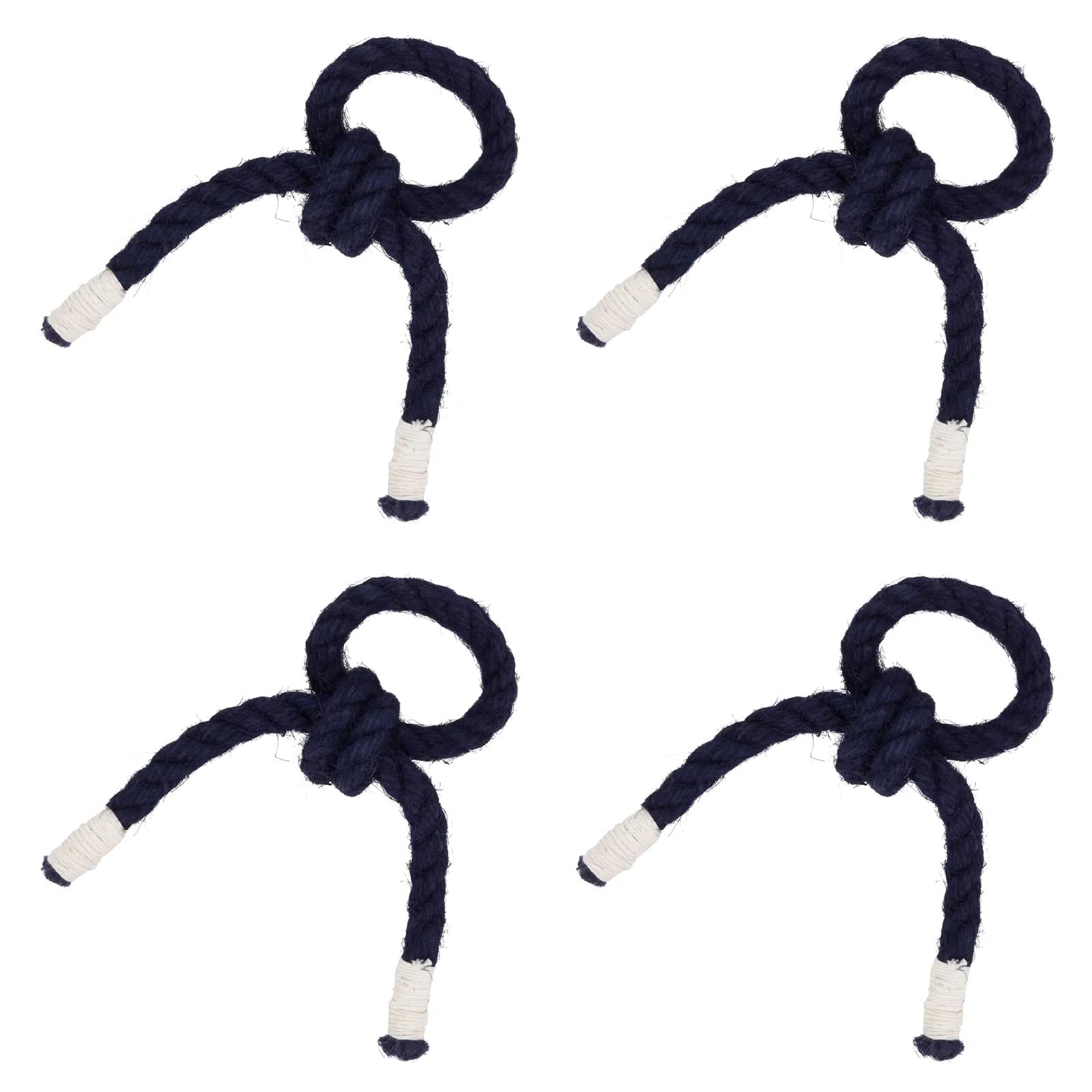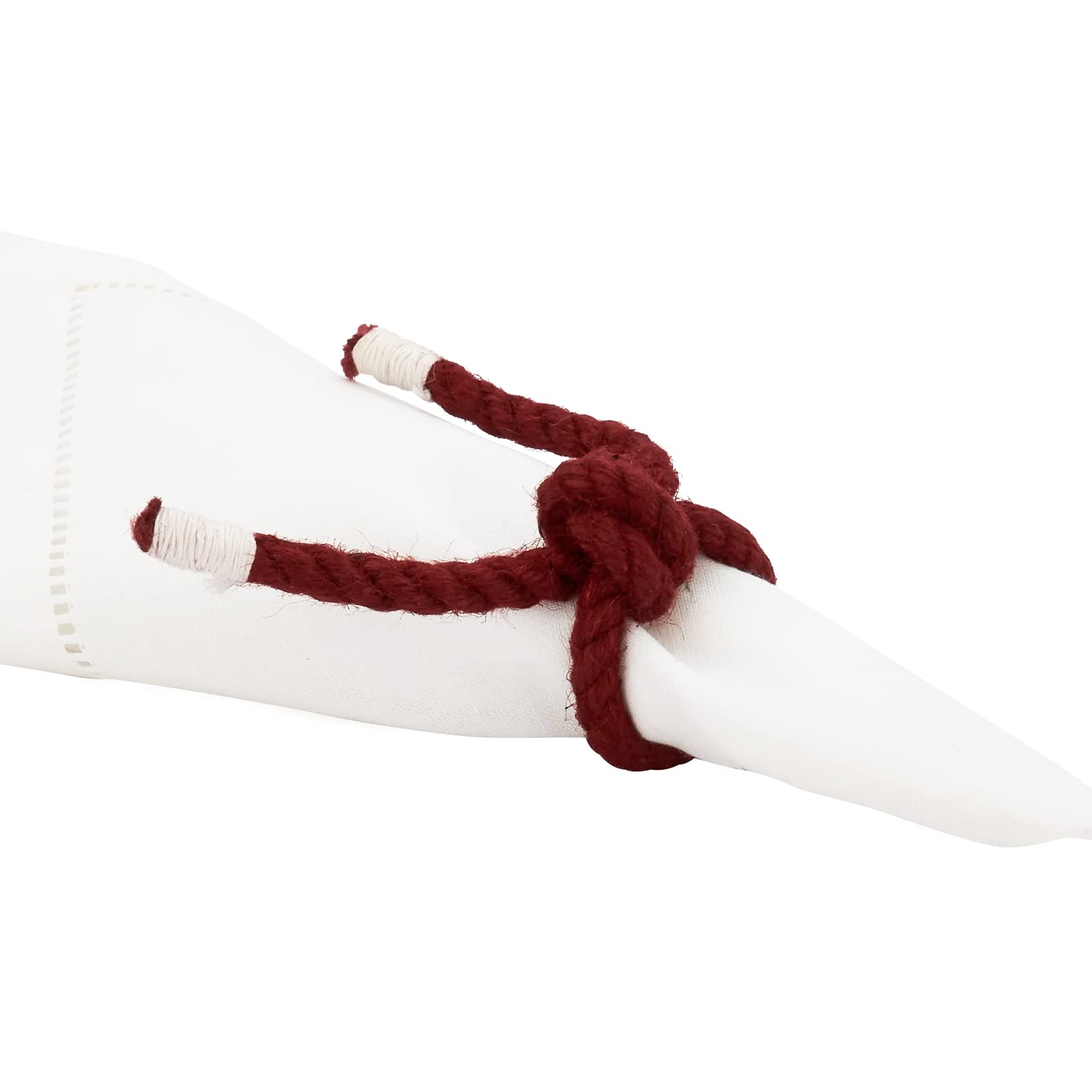 - 4PK KNOTTED ROPE NAPKIN RINGS – Highly versatile, the Knotted Rope Napkin Rings can bring a classic look to your tabletop, or a contemporary style depending on the occasion. The twist rope design and the central knot offer great dimension and texture to every place setting. The solid, classy cotton brings style and sophistication to your tablescapes, a lovely accent for the table. The set can be easily dressed up or pared down and paired with a wide range of tableware and napkins.