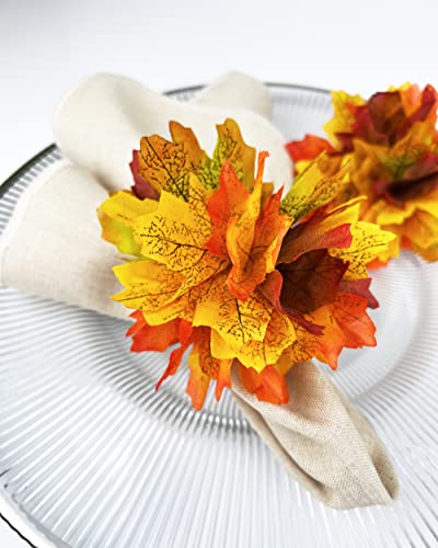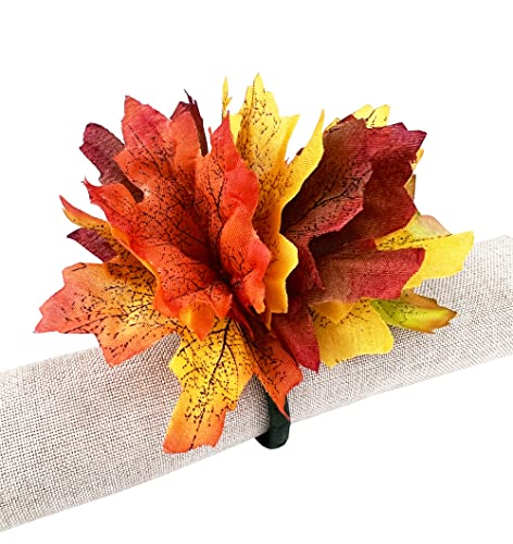 - PERFECT NAPKIN RINGS DÉCOR – Each napkin ring is approximate 3 inches in width, 4 inches in height, and 1.5 diameters, these circle base napkin rings are perfectly sized for layering for your dining setting. The rich colors and tones with a delicate design add texture to the table, these fall maple leaves napkin rings will be stunning at a harvest theme or Thanksgiving but also make a great formal dinner or everyday napkin ring complemented by a delicious meal.