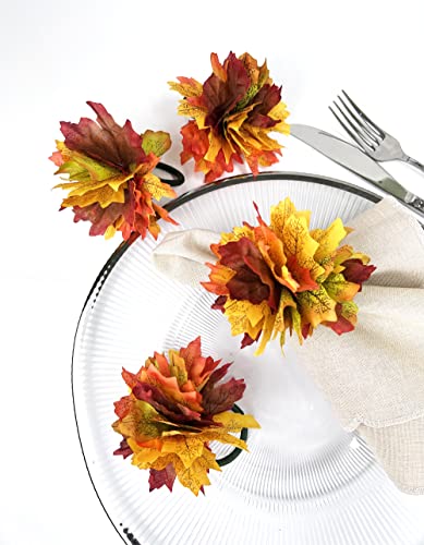- 4PK FALL LEAVES NAPKIN RINGS – Play on the harvest spirit with these Maple Leaves Napkin Rings to add fall beauty to any table. It showcases handcrafted with realistic-look maple leaves lending a natural touch to your seasonal table decor. Its nature-inspired and festive design pairs exceptionally well with organic linens and artisanal stoneware, giving your tabletop a refined aesthetic. This fall napkin ring is perfect for harvest parties, family gatherings, and Thanksgiving events.