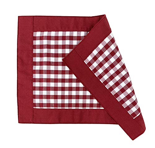 - HANDMADE BUFFALO PLAID SOLID BORDER REVERSIBLE PLACEMATS – Add a touch of rustic charm to your dining table with these Buffalo Plaid Reversible Placemats. Featuring fully reversible, design with a handmade solid border to create a textured look to the dining table. Plaid pattern easily mixes well with a variety of patterns. Simply add your favorite accent pieces and tableware to create an inviting place for friends and family to gather over delicious food and great conversation.