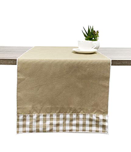 Fennco Styles Handmade Reversible Checkered Border Design Table Runner - Check Table Cover for Home, Dining Table, Banquet and Special Occasion