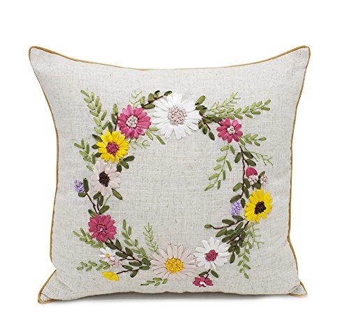 Details: Beautiful handmade ribbon embroidery garden styles floral linen throw pillow, this handmade ribbon embroidery decorative throw pillow adds a fresh touch to your any space.
