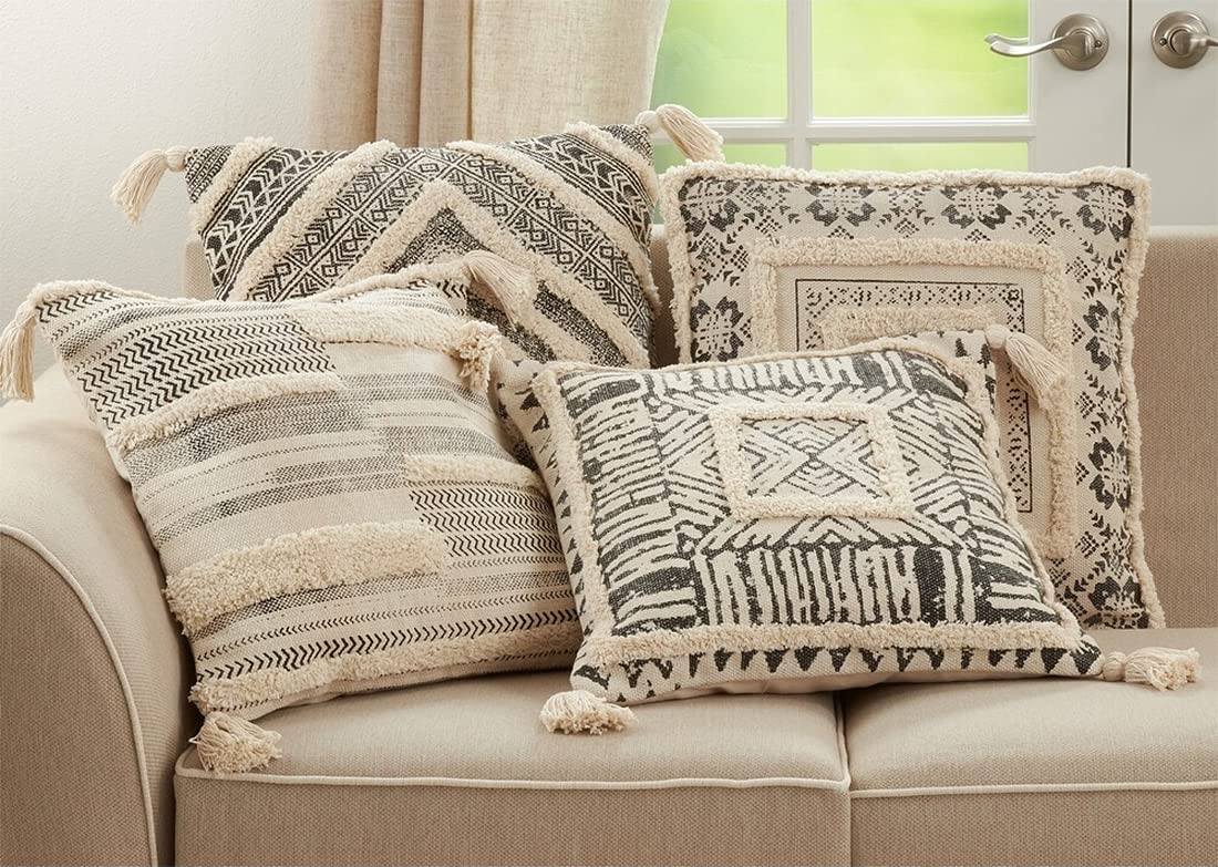 - PERFECT COUCH PILLOW DECOR – At 20 inches in both width and length, this square-shaped decorative pillow is perfectly sized for layering on your bed and sofa. Geometrical shapes in neutral colors easily complement existing décor. Simply toss it onto any seat of your choice or set it against a bank of pillows on the couch for an instant upgrade.