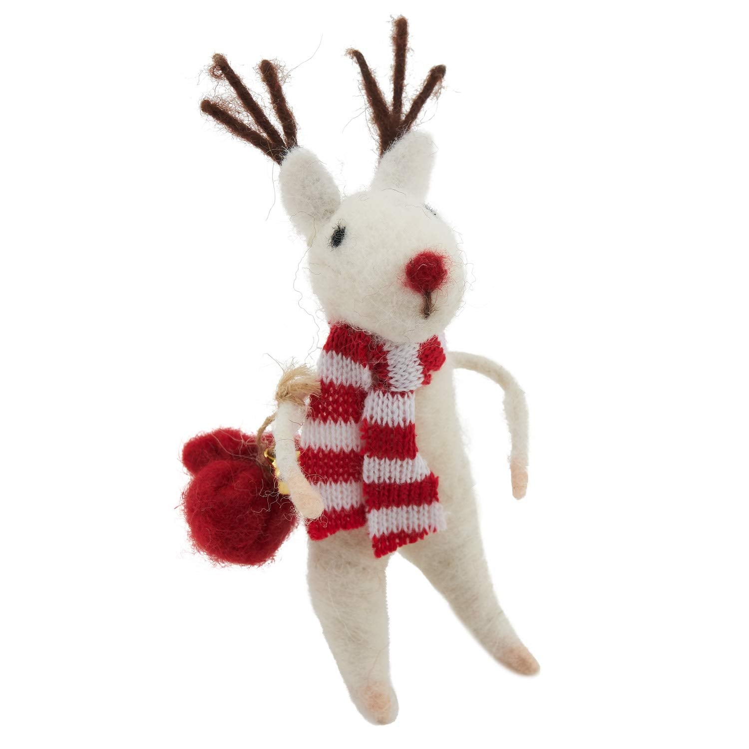 Fennco Styles Handmade Wool Blend Creative Christmas Ornament - Reindeer Mouse for Christmas Tree Décor, Holiday, Home, Tabletop and Kids Room Decorations