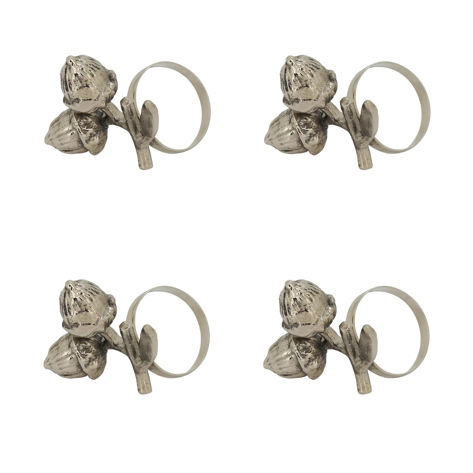 Fennco Styles Harvest Acorn Brass Napkin Rings, Set of 4 - Silver Metal Napkin Holders for Holiday, Home Décor, Dining Room, Banquets, Family Gatherings and Special Occasions