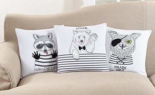 Fennco Styles Hello Bear Statement Poly Filled Decortative Cotton Throw Pillow 16" Square