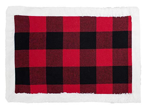 Fennco Styles Holiday Buffalo Plaid Red and Black with White Faux Fur Border Design Table Runner 16" W x 72" L