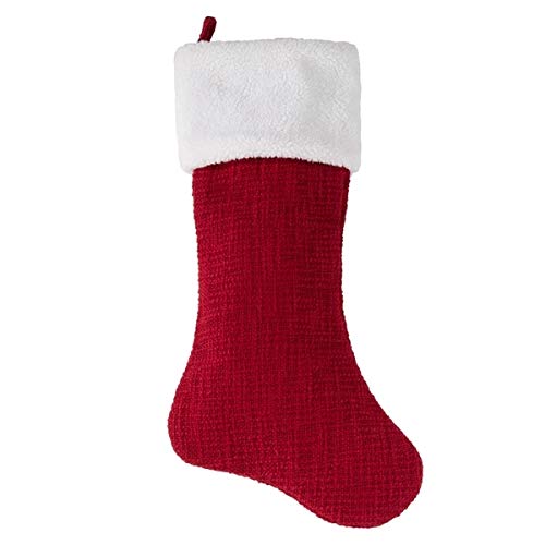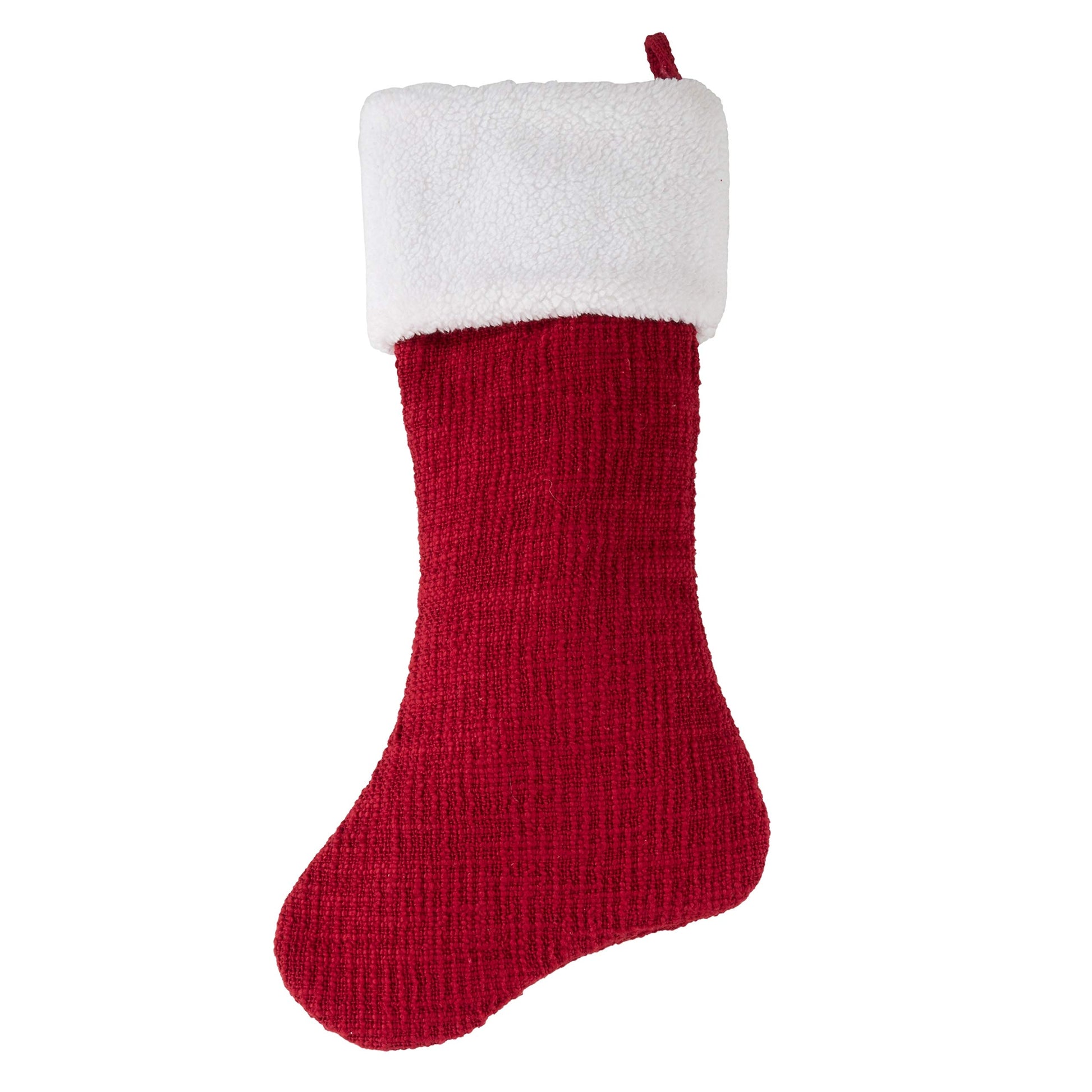 Fennco Styles Holiday Christmas Textured Cotton Christmas Stocking with Sherpa Border