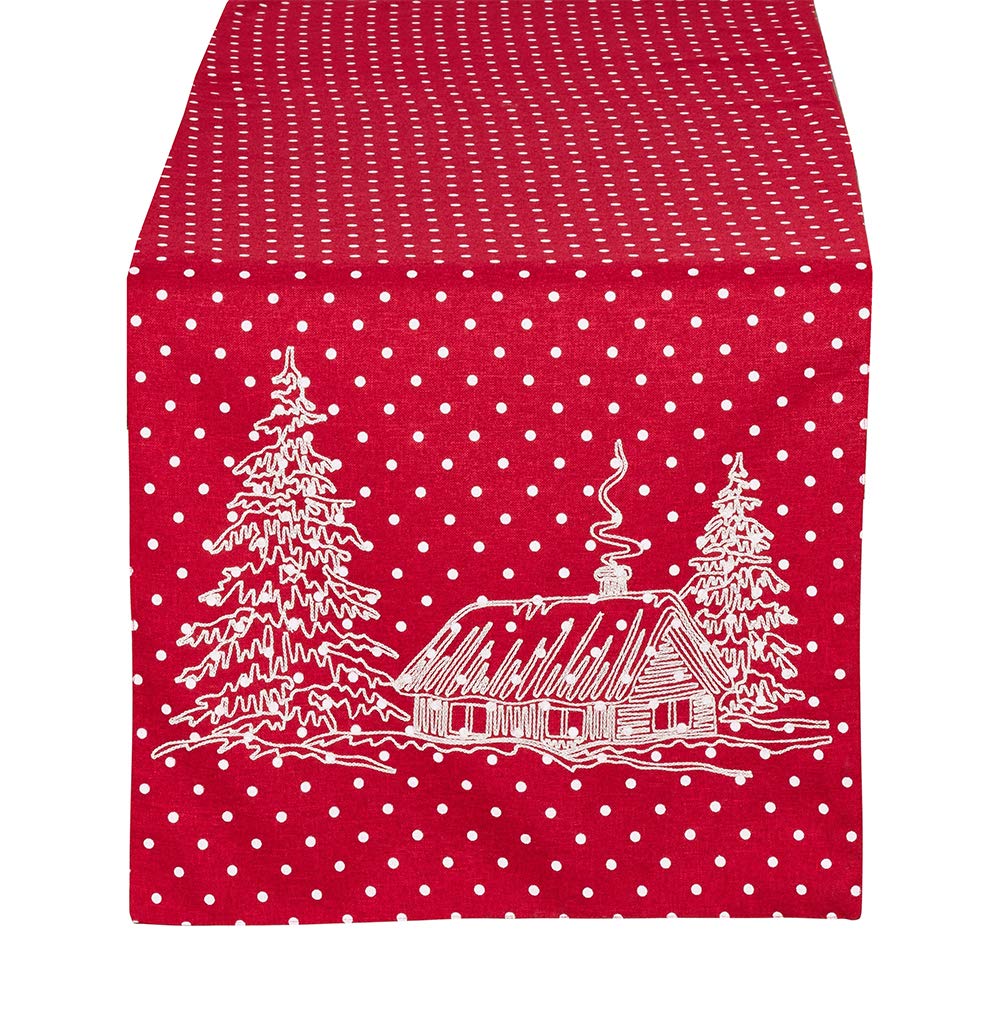 Fennco Styles Holiday Cottage Red Polka Dot Table Runner, 16"x70" Rectangular