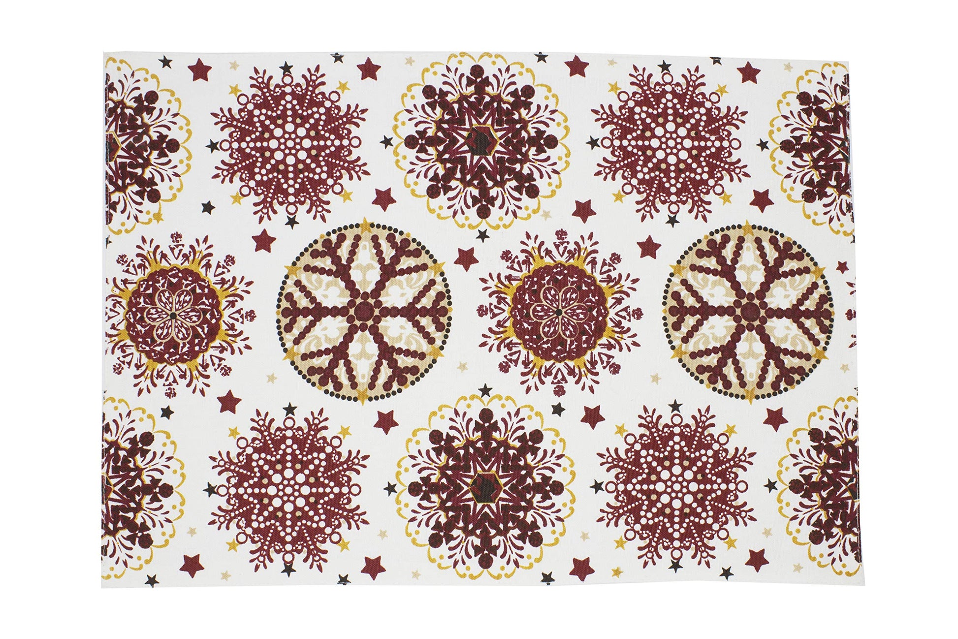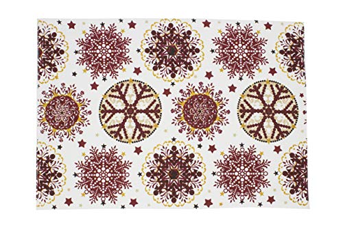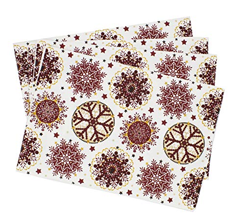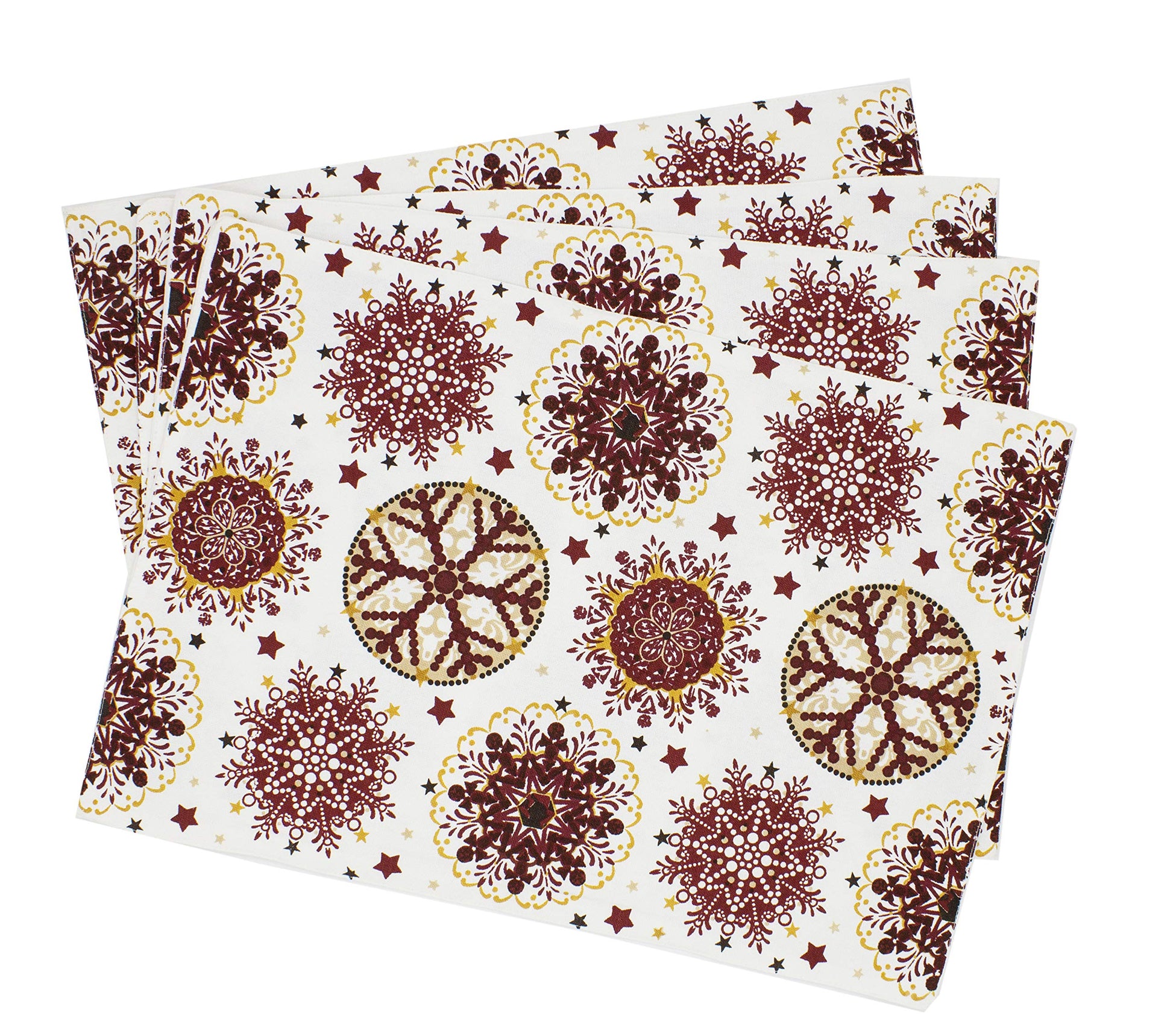 - Silhouetted against an ivory background, these festive placemats boast a festive red snowflake print complete with gold metallic detail. With its whimsical pattern and cheery hues, this table placemat set is sure to deck your halls and spread Christmas cheer!