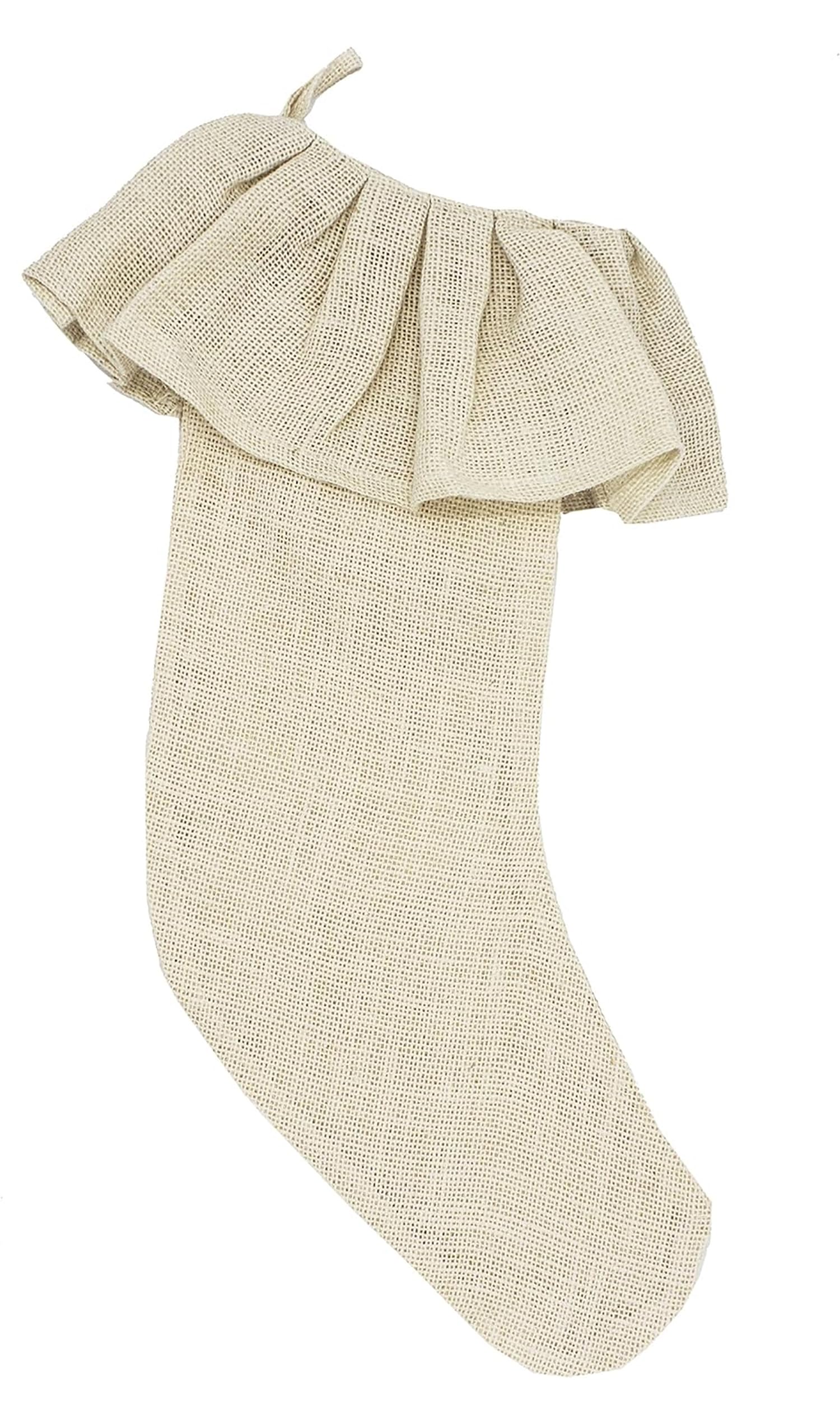 - PERFECT CHRISTMAS STOCKING – At 13 inches in width and 19 inches in length, with a 2.5" burlap hanging loop, these stockings are a classic addition to your Christmas decor, blending the natural beauty of jute with a touch of whimsy through their ruffled design. These Ruffled jute Christmas stockings offer a charming and rustic twist on a beloved holiday tradition.