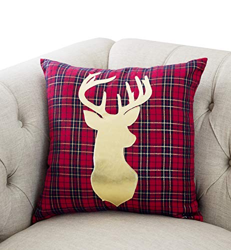 Fennco Styles Holiday Deer Tartan Plaid Christmas Decorative Filled Throw Pillow