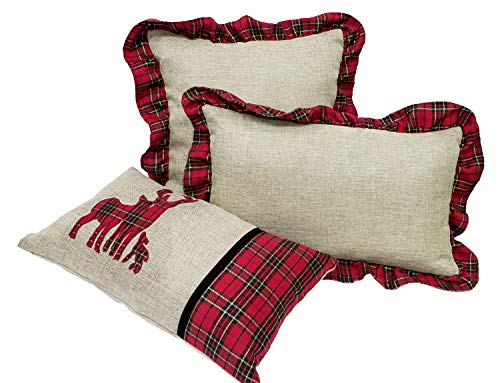 Fennco Styles Holiday Deer Tartan Plaid Ruffle Border Christmas Decorative Throw Pillow