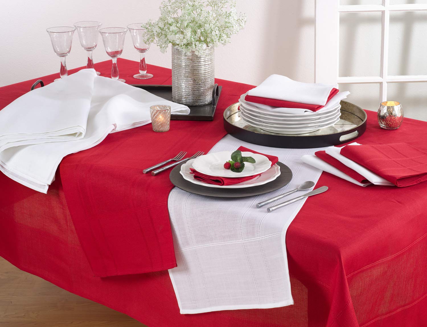 Fennco Styles Holiday Drawn Work Thread Design Tabletop Collection - 2 Colors (White, 72"x162" Tablecloth)