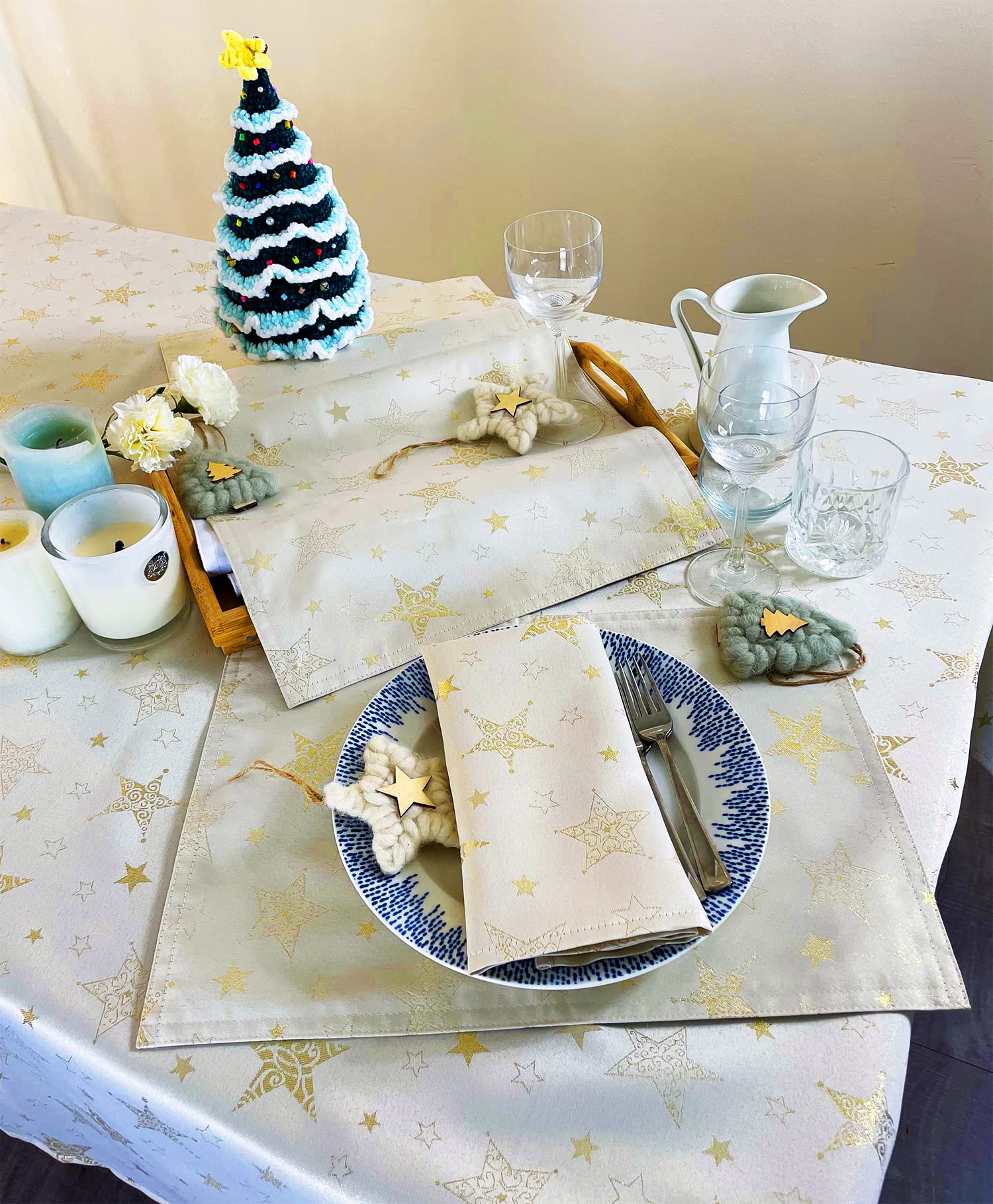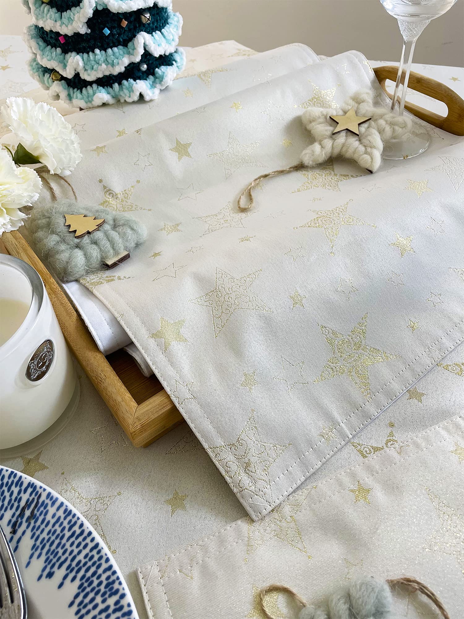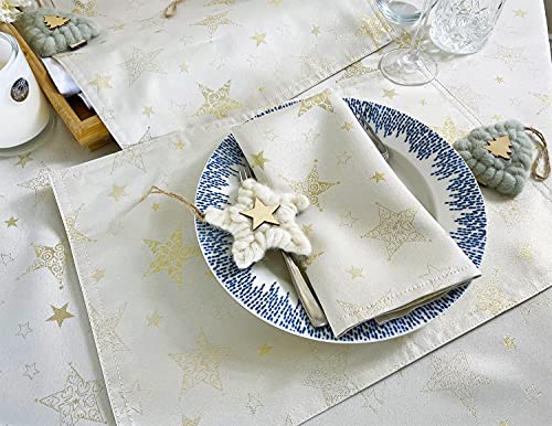 - EMBROIDERED STAR PLACEMATS, SET OF 4 – Add a perfect finish touch to your Christmas Day or during the holidays with the Embroidered Stars Placemats. Featuring a star motif in metallic embroidery over an ivory background for a touch of sophisticated sparkle to your beautiful winter tablescape. The subtle gold thread adds a quiet elegance and reflecting light for a glittering effect makes these exquisite embroidered placemats are great for everyday décor or casual dinner during the holiday season.