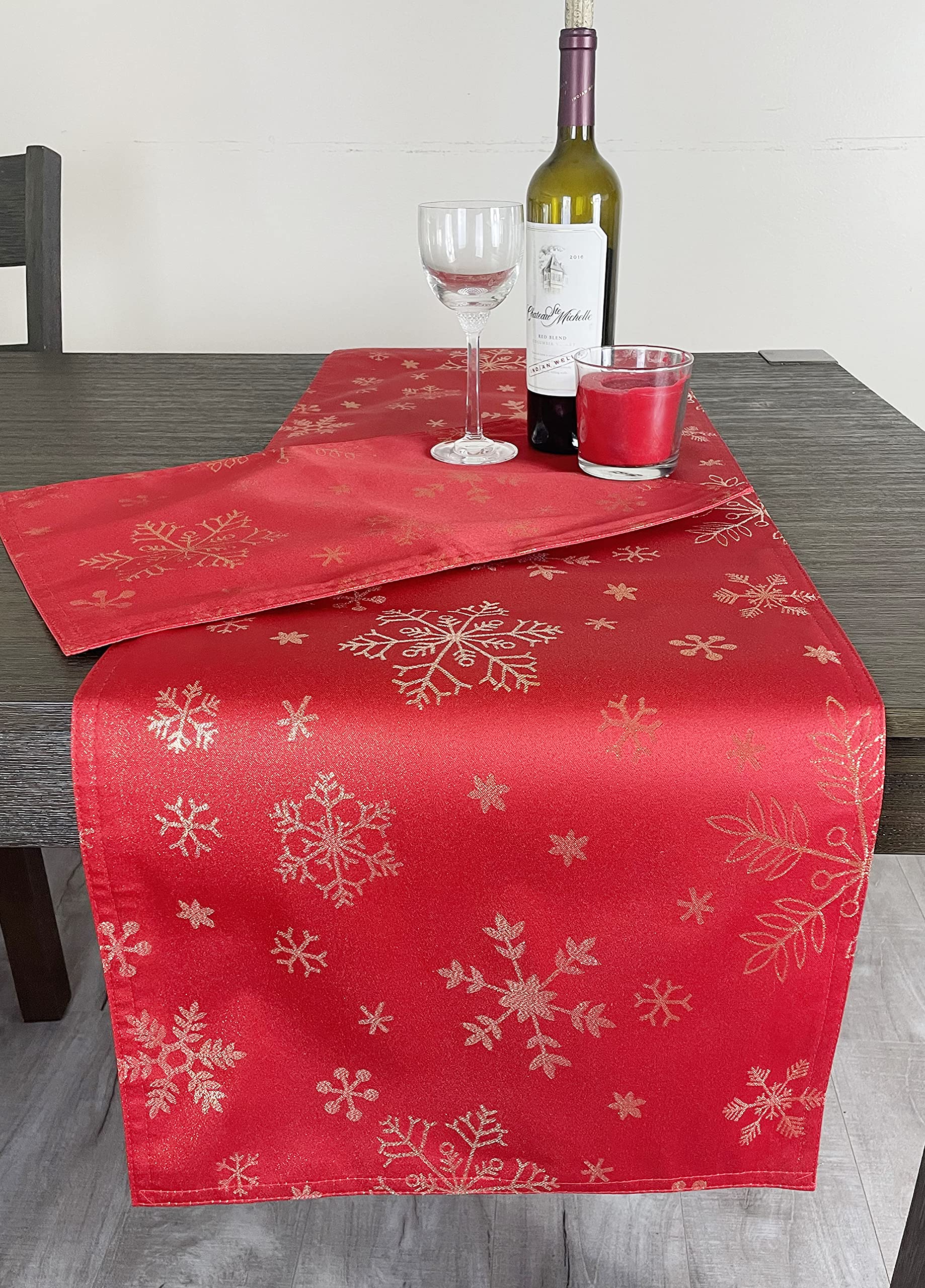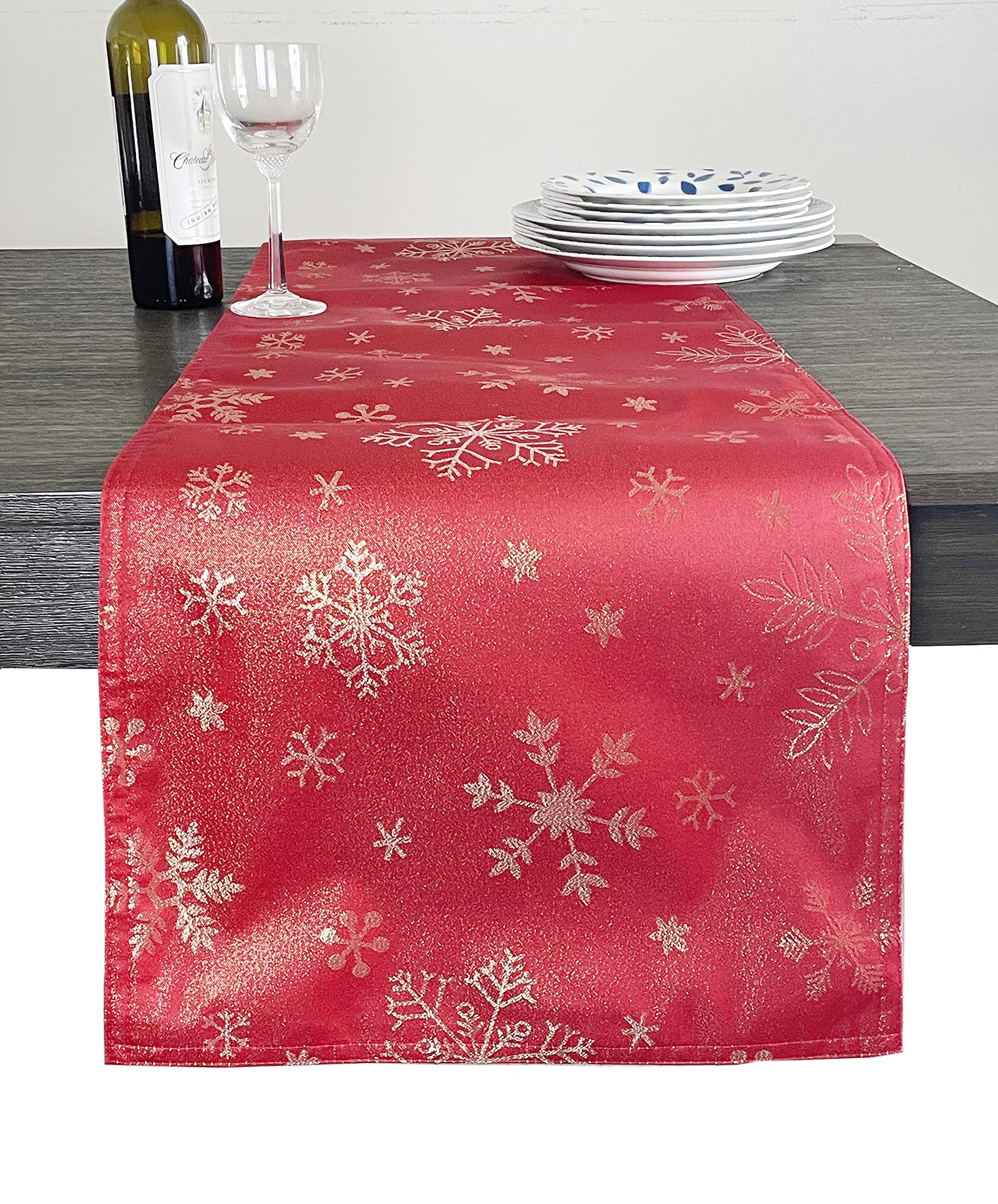 Fennco Styles Holiday Foil Print Snowflake Table Runner 16" W x 54" L - Red Woven Table Cover for Home Décor, Banquet, Family Gathering, Christmas, Special Occasion