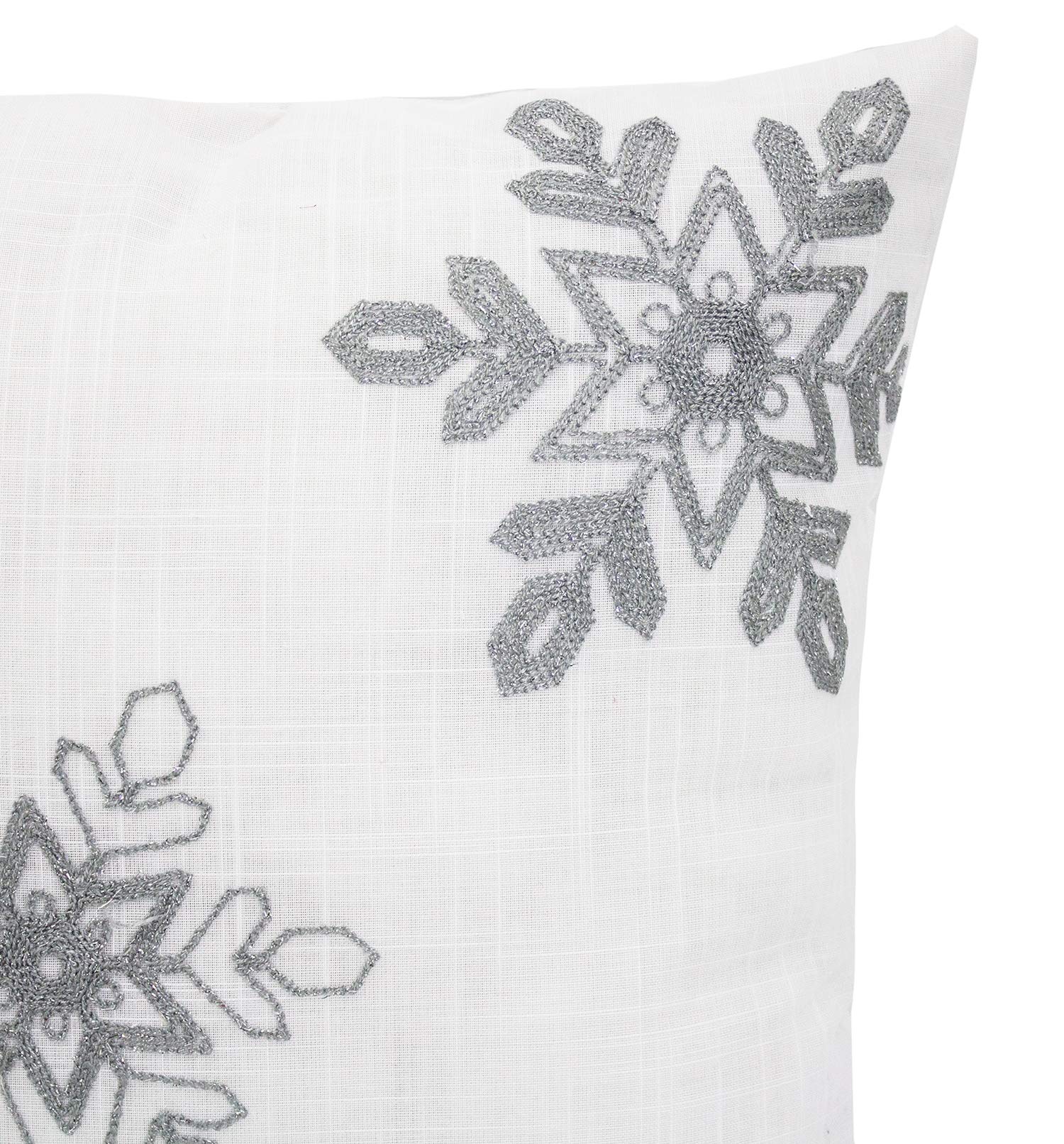 Details: Dress your holiday home in contemporary classics with Fennco Styles Nivalis Snowflake Design throw pillow. Exquisite embroidery embellishes the sparkle of the snowflake throw pillow. This pillow is sure to give your space a chic makeover and its snowflake detail will spread festive cheer in your home like no other.