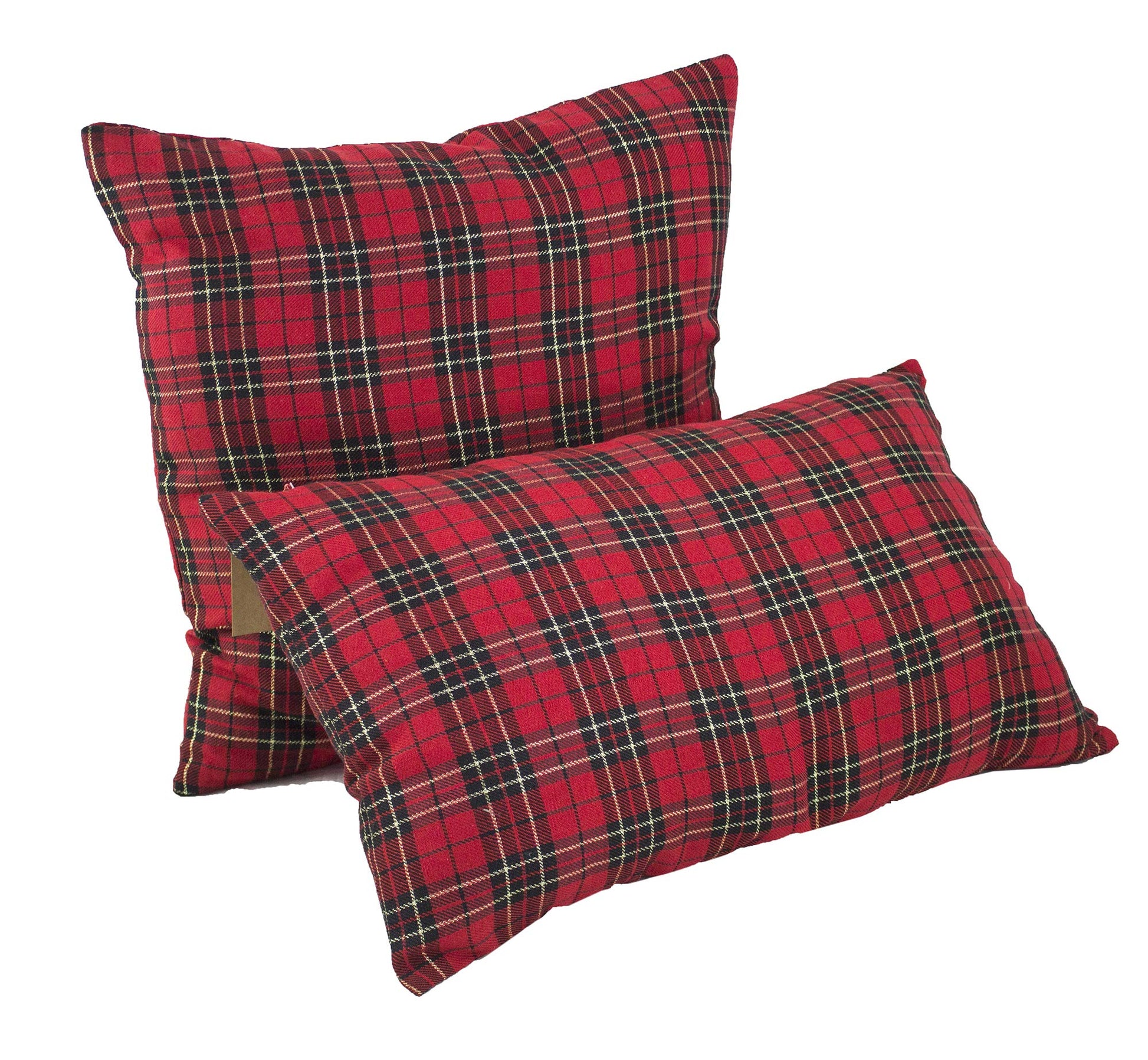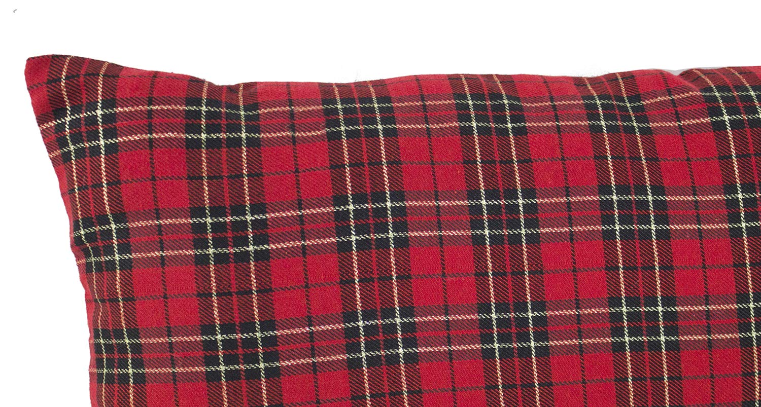 - A black and red tartan pattern gives this square throw pillow a touch of timeless charm that'll spruce up your holiday setting in classic style. Soft yet durable for everyday use, layer this bedding with all-white linens for a classic look, or with iconic holiday prints for a playful ensemble.