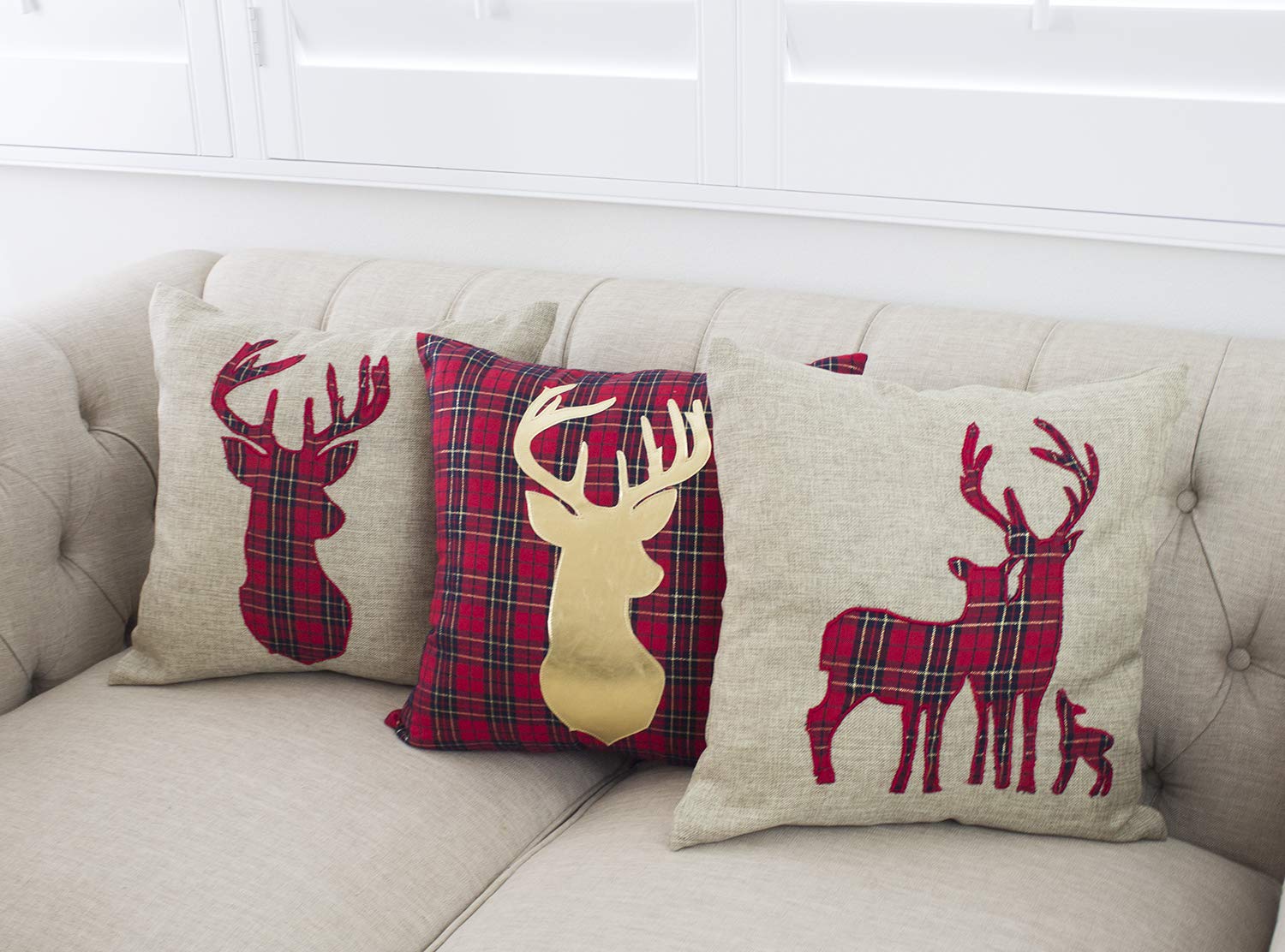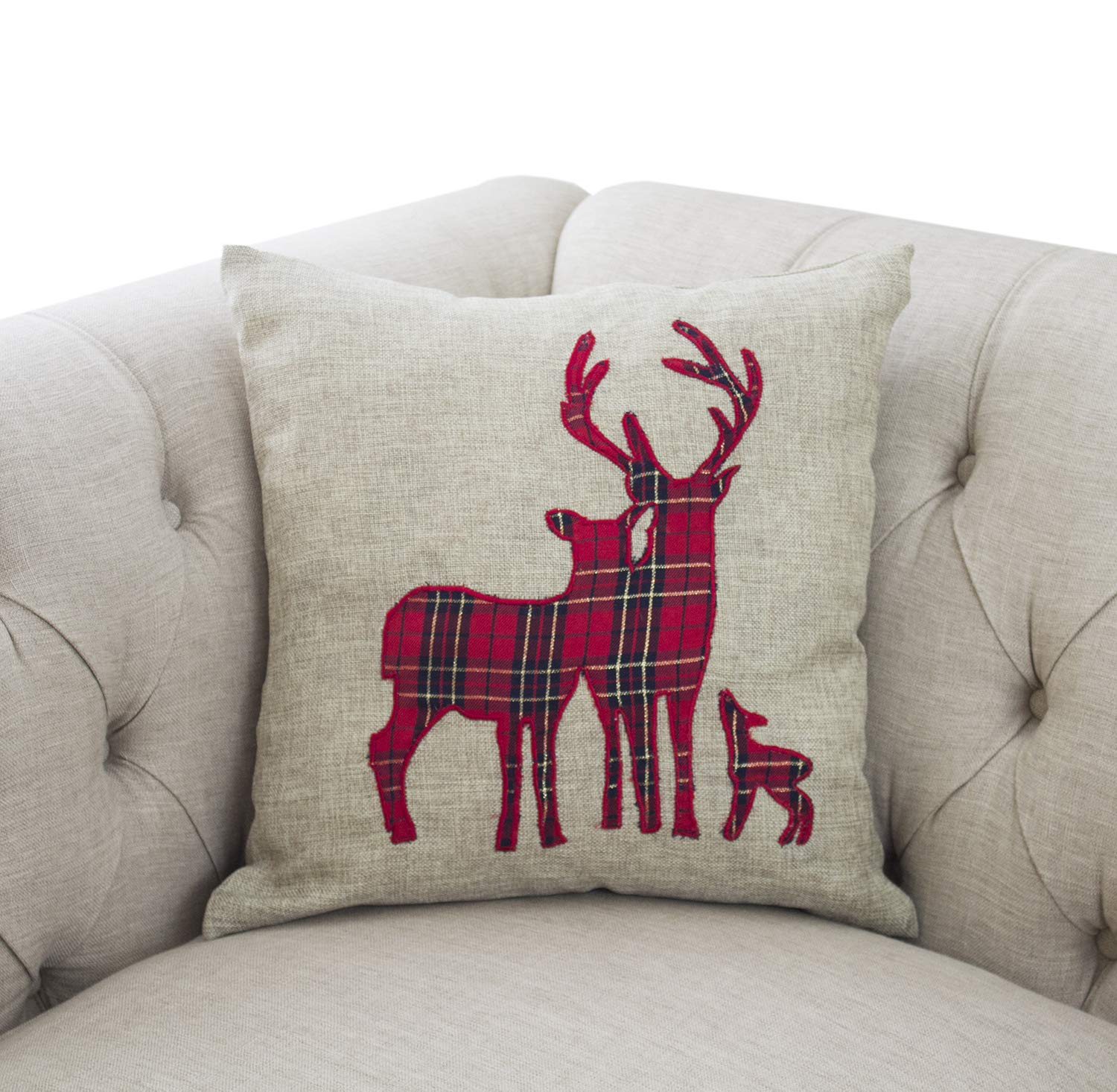- PLAID DEER THROW PILLOW COVER - Bring a festive charm and cozy comfort to your space with the Holiday Plaid Deer Throw Pillow Cover. It features a red plaid deer pattern on a natural background that will instantly add a welcoming, sophisticated note to your winter decor, it’s versatile enough to coordinate with rustic lodge or Christmas décor. Whether you place it in the living room, or couch or use it as a stand-alone accent, it brings a splash of color and comfort to your space.