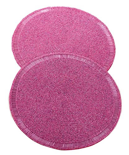 Fennco Styles Home Décor Gianna Collection Beaded Design Placemats 14" Round, Set of 2 - Table Mats for Home, Dining Table, Banquets, Holidays Décor and Special Occasion