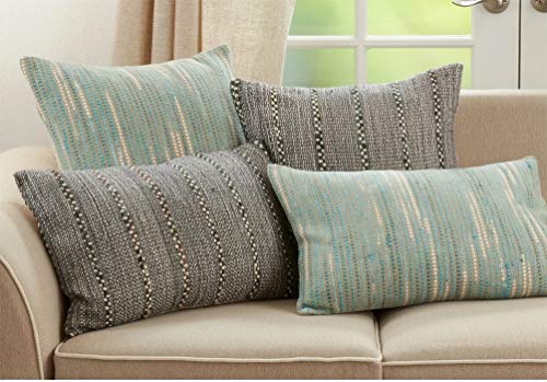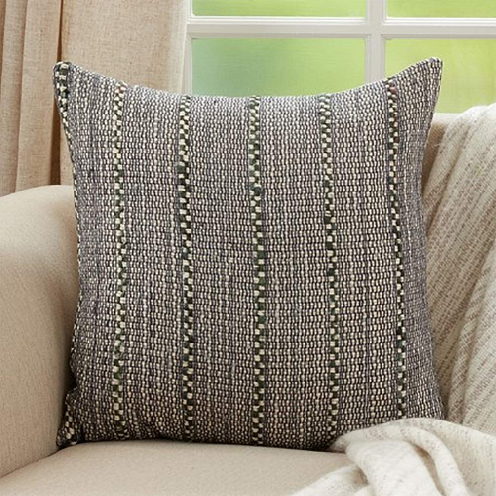 - HOMEY STRIPED COTTON THROW PILLOW – Bring a stylish look into your living space with this Homey Striped Throw Pillow. Features a neutral blue hue, this cotton pillow sports a textured white exterior decorated with classic stripes in a contrasting hue to add chic flair to any indoor setting. Easily mix and match with light tones or neutral of pillows for a more personalized space.