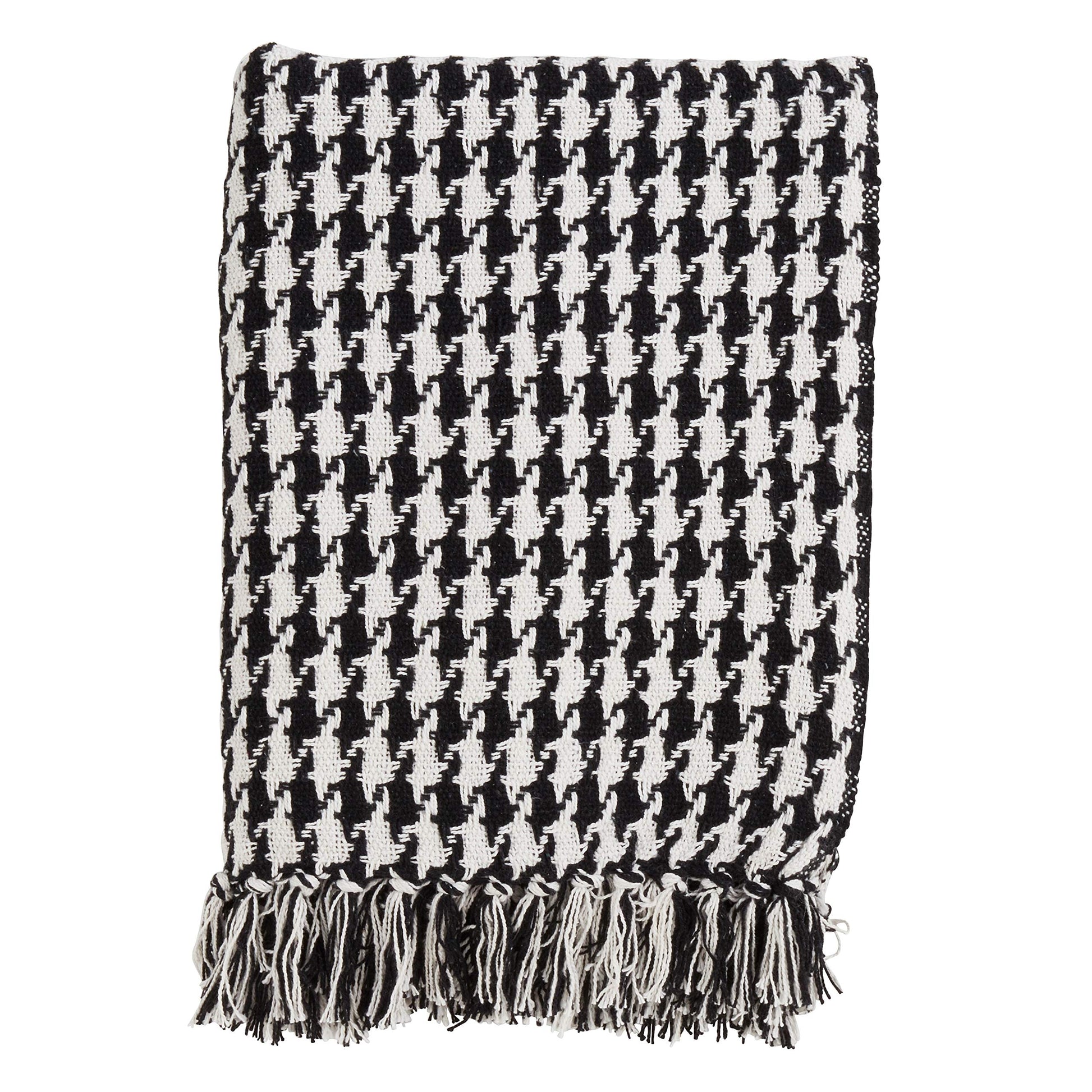 - ✦ This cotton blanket features a classic houndstooth print and 3" L tassel design for fashionistas this cozy throw is a must-have. It brings elegance, class, and finesse to any space.